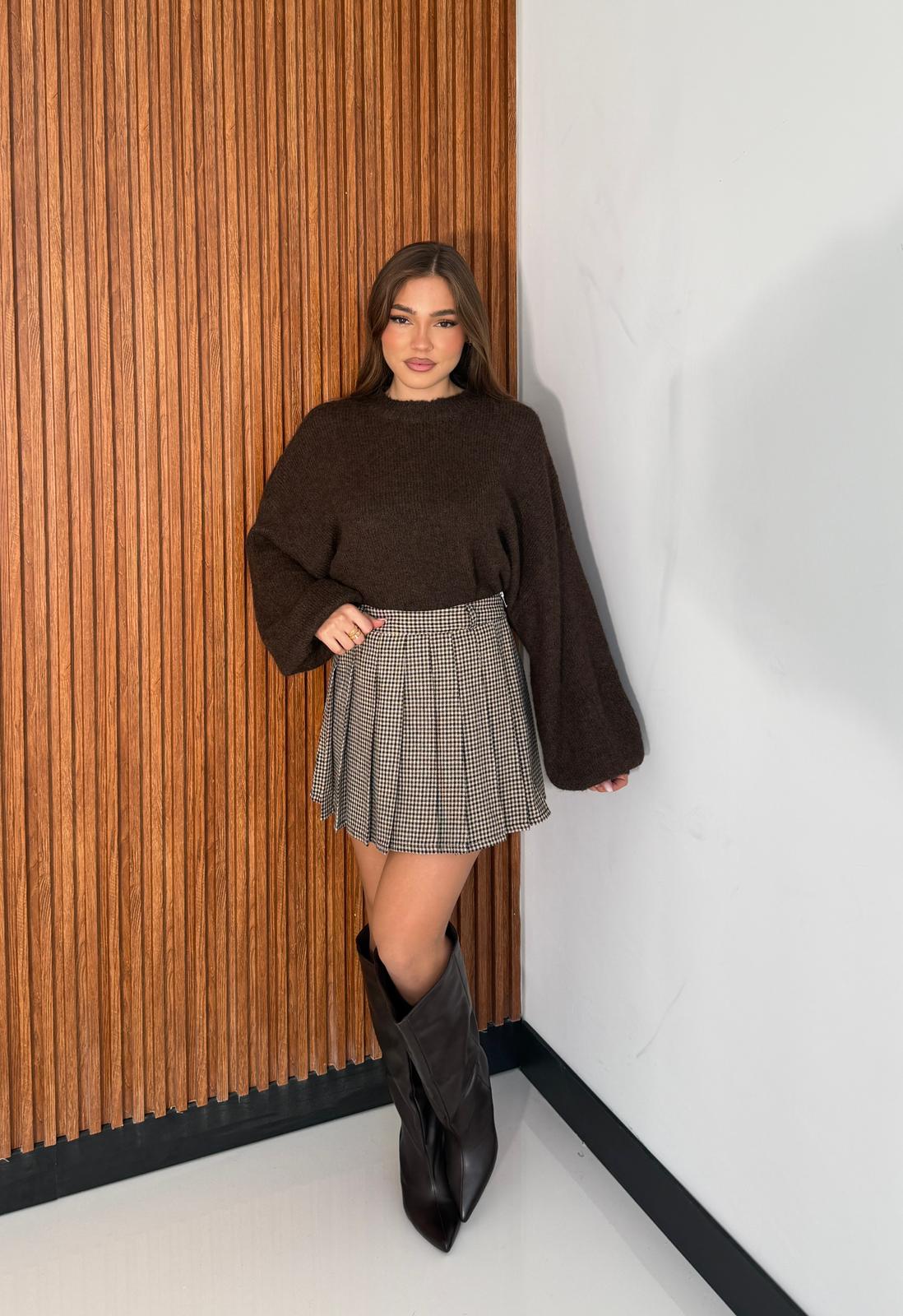 Gonna da donna in franella con chiusura zip laterale e veste bene la propria taglia, la modella indossa taglia S