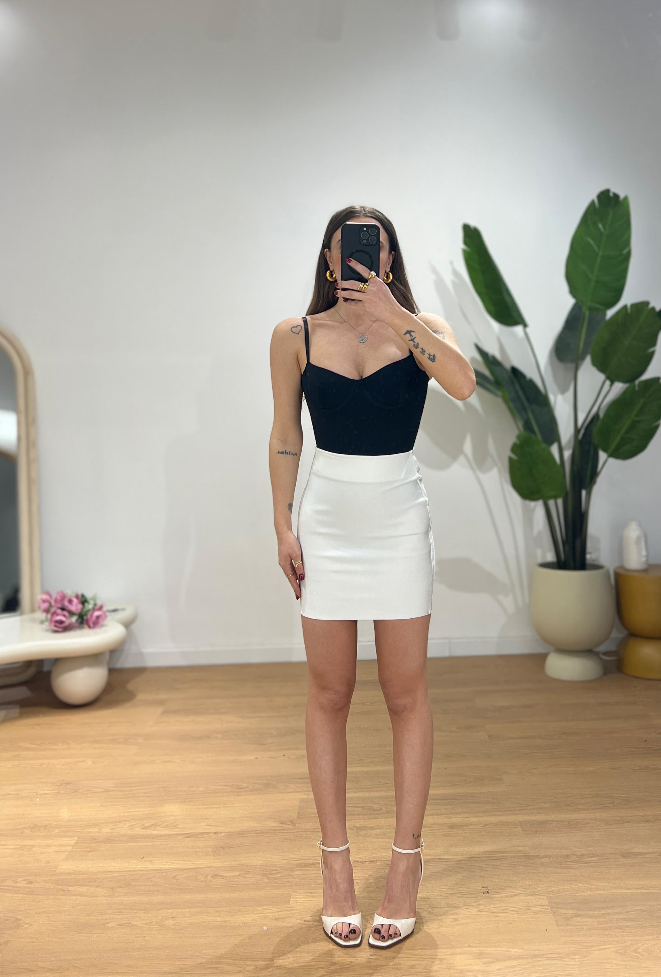 Gonna da donna bandage tessuto elasticizzato ma contenitivo e veste regolarmente la propria taglia e Giusy indossa taglia S/M