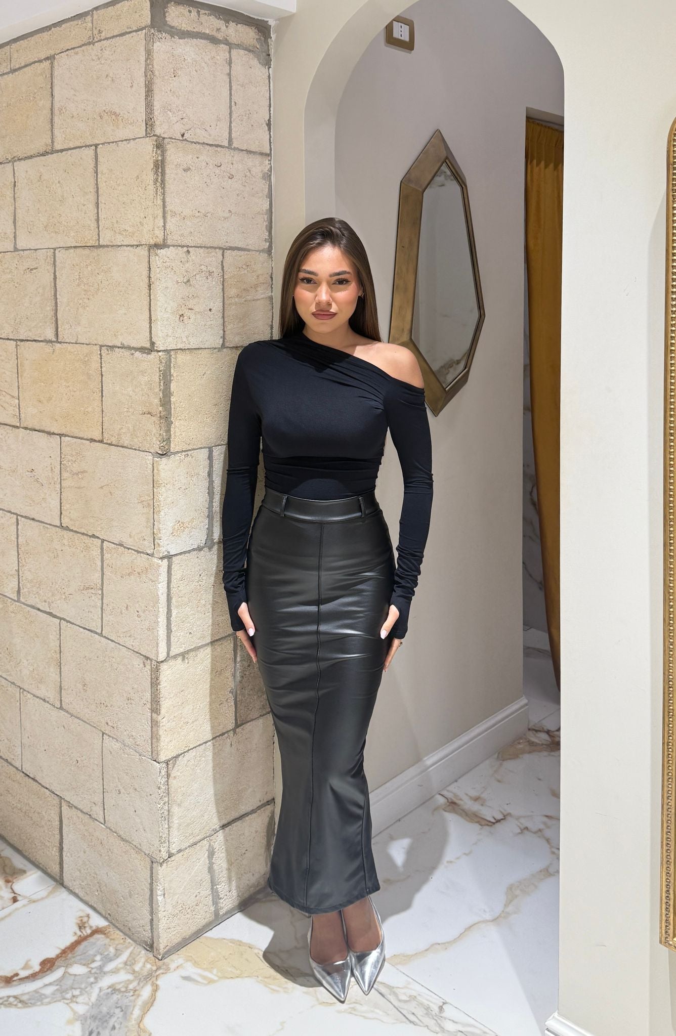 Gonna da donna in ecopelle con chiusura zip sul retro tessuto leggermente elasticizzato e vestirà bene fino ad una 42 piena