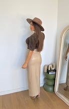Gonna Da donna in ecopelle con chiusura zip e spacchetto sul retro,  veste regolarmente la propria taglia e la modella indossa taglia S