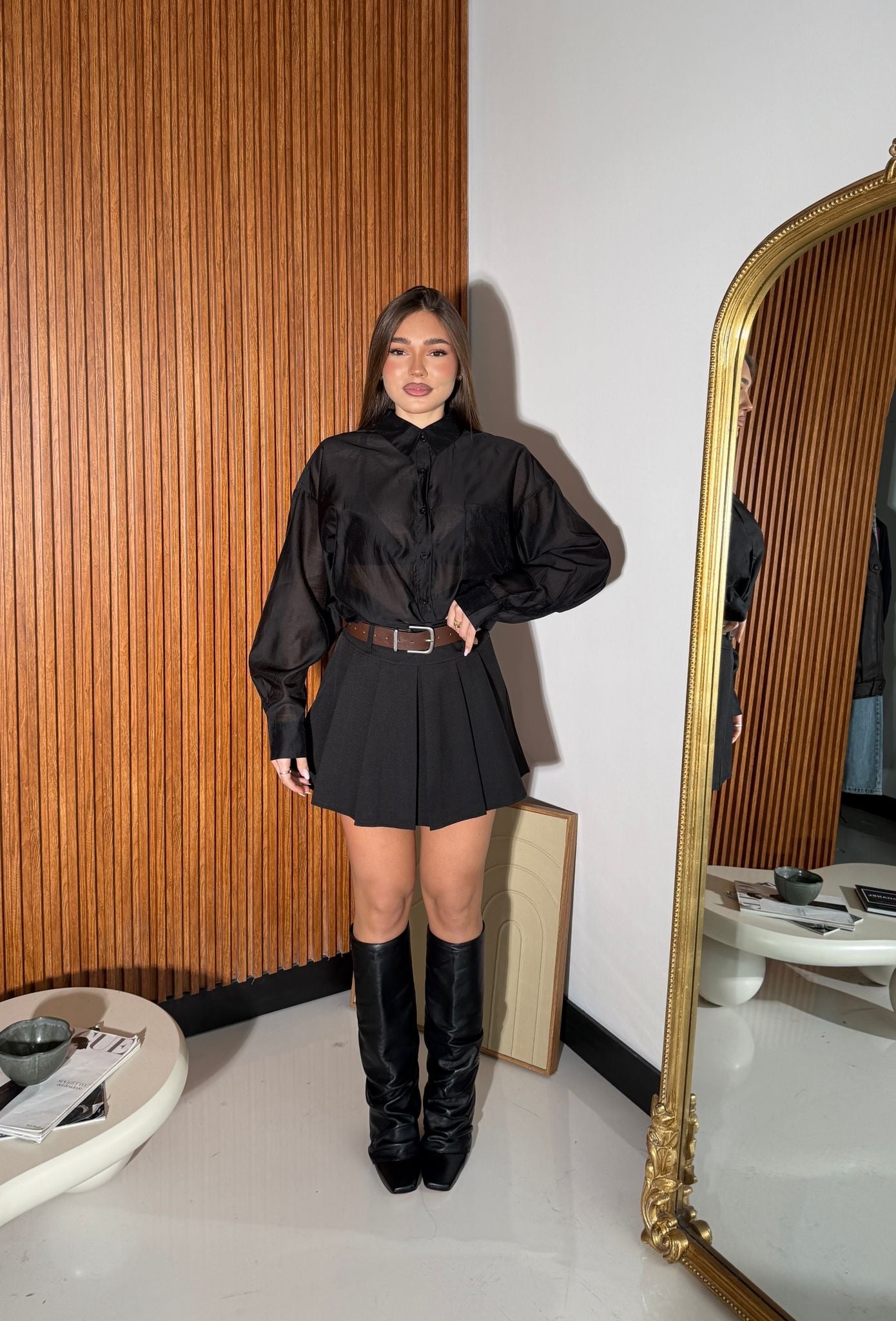Gonna/Shorta da donna plissettata, con chiusura a zip laterale, cintura compresa, e shorts interno. Veste regolarmente la propria taglia e la modella indossa taglia S ed è alta 1,65 e pesa 52/53 kg.
