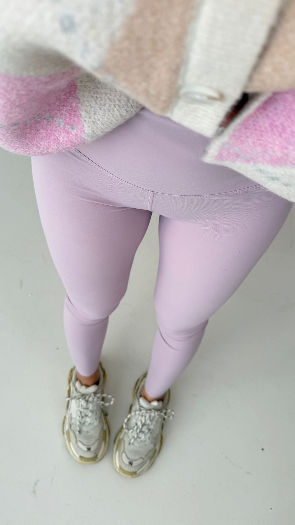 Leggings da donna in lycra, contenitivo, tessuto elasticizzato. Veste regolarmente la propria taglia, la modella in foto indossa taglia S ed è alta 1,65 e pesa 52/53 kg.
