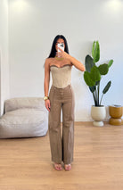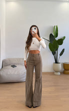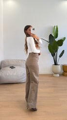 Jeans da donna tessuti elasticizzati vita alta ma veste regolarmente la propria taglia e la modella indossa taglia XS
