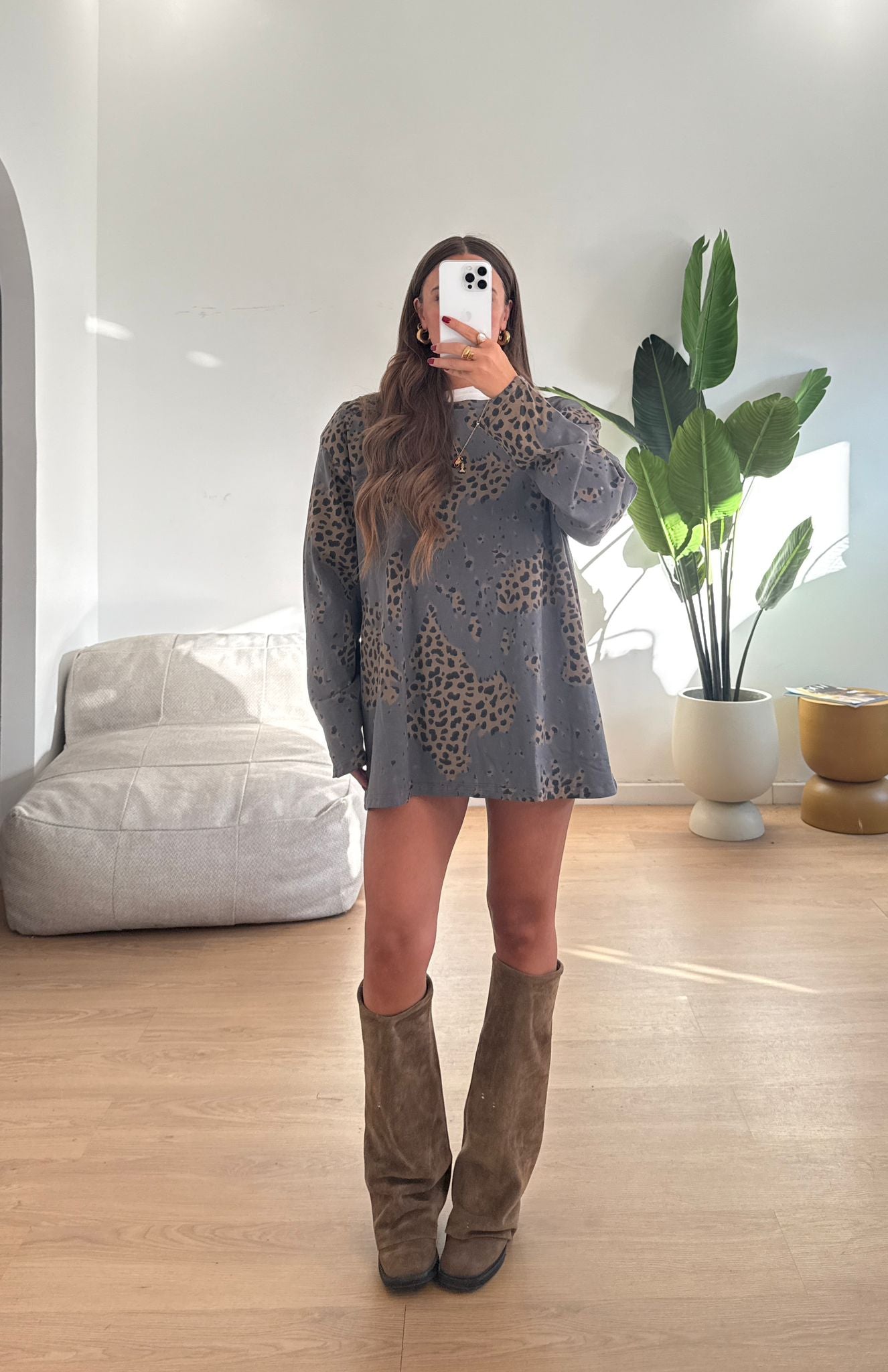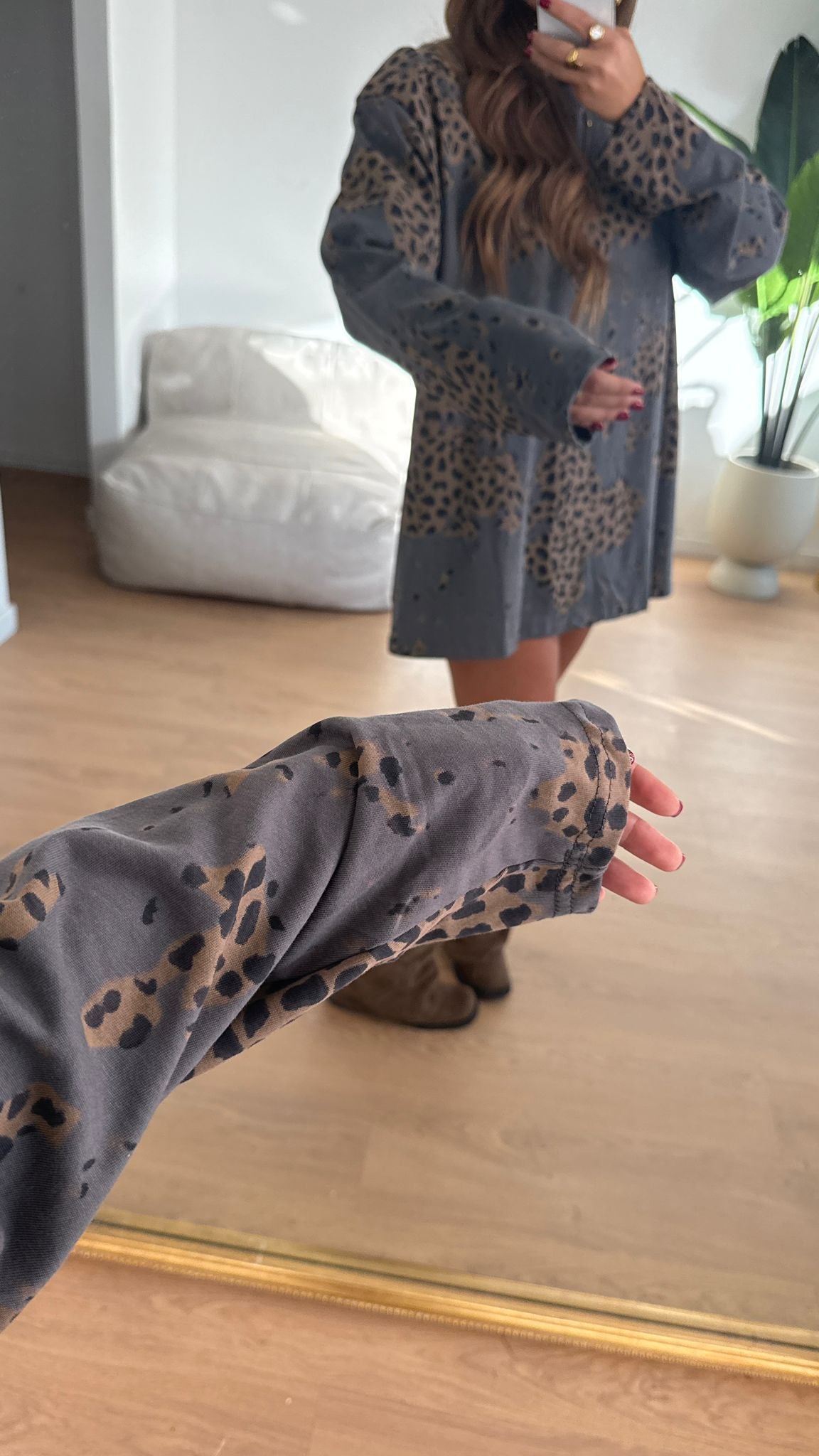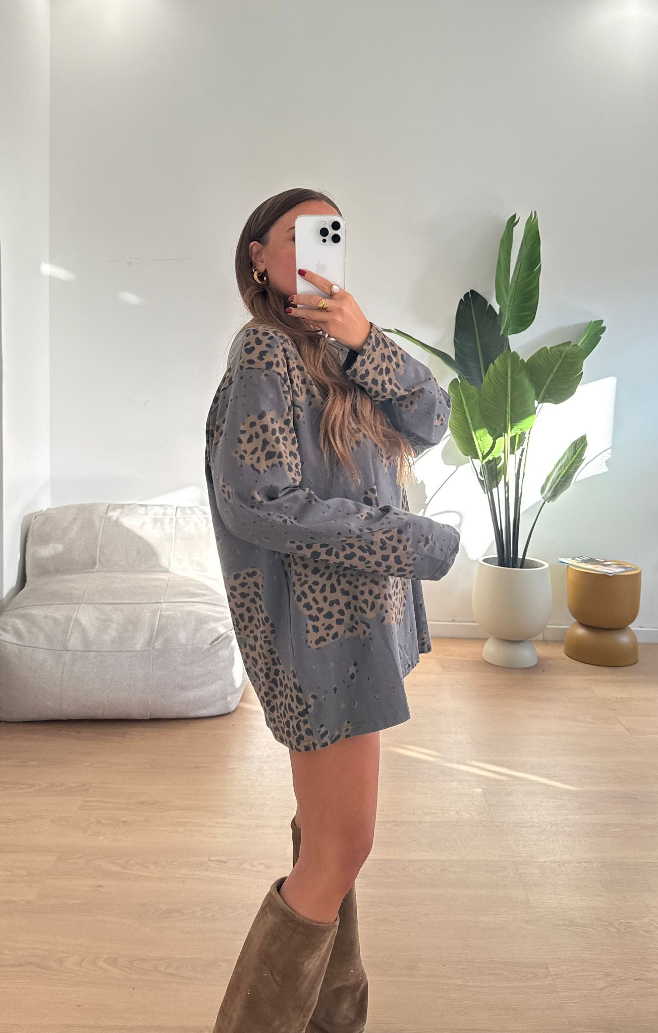 Maglia da donna modello oversize fantasia leopardata e vestirà bene fino ad una M/L piena