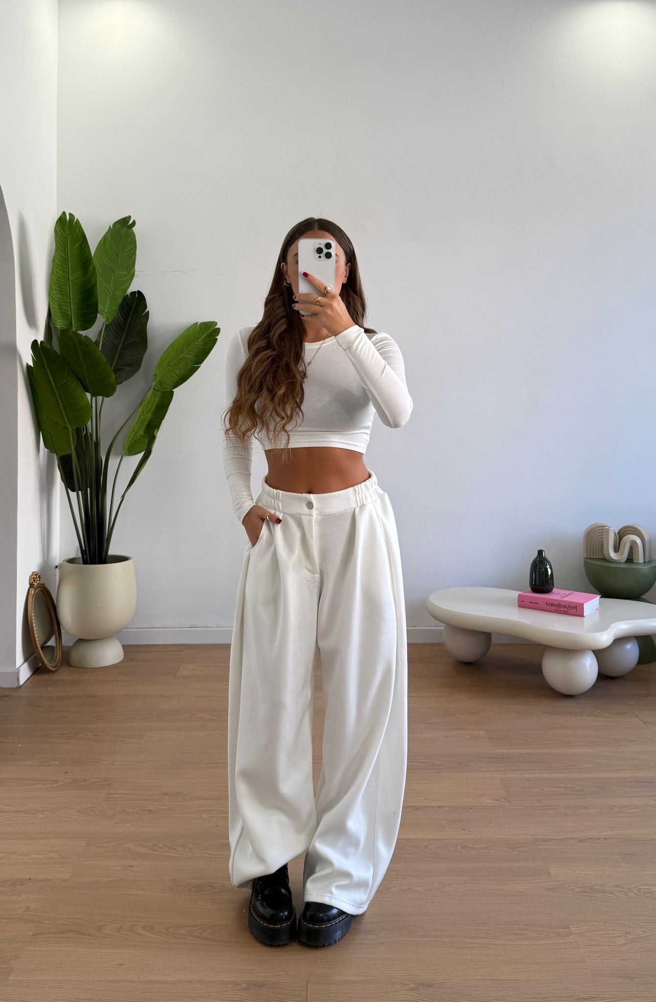 Pantatuta da donna modello ballon con elastico in vita e bottoncino. Veste regolarmente la propria taglia, la modella indossa taglia S/M.