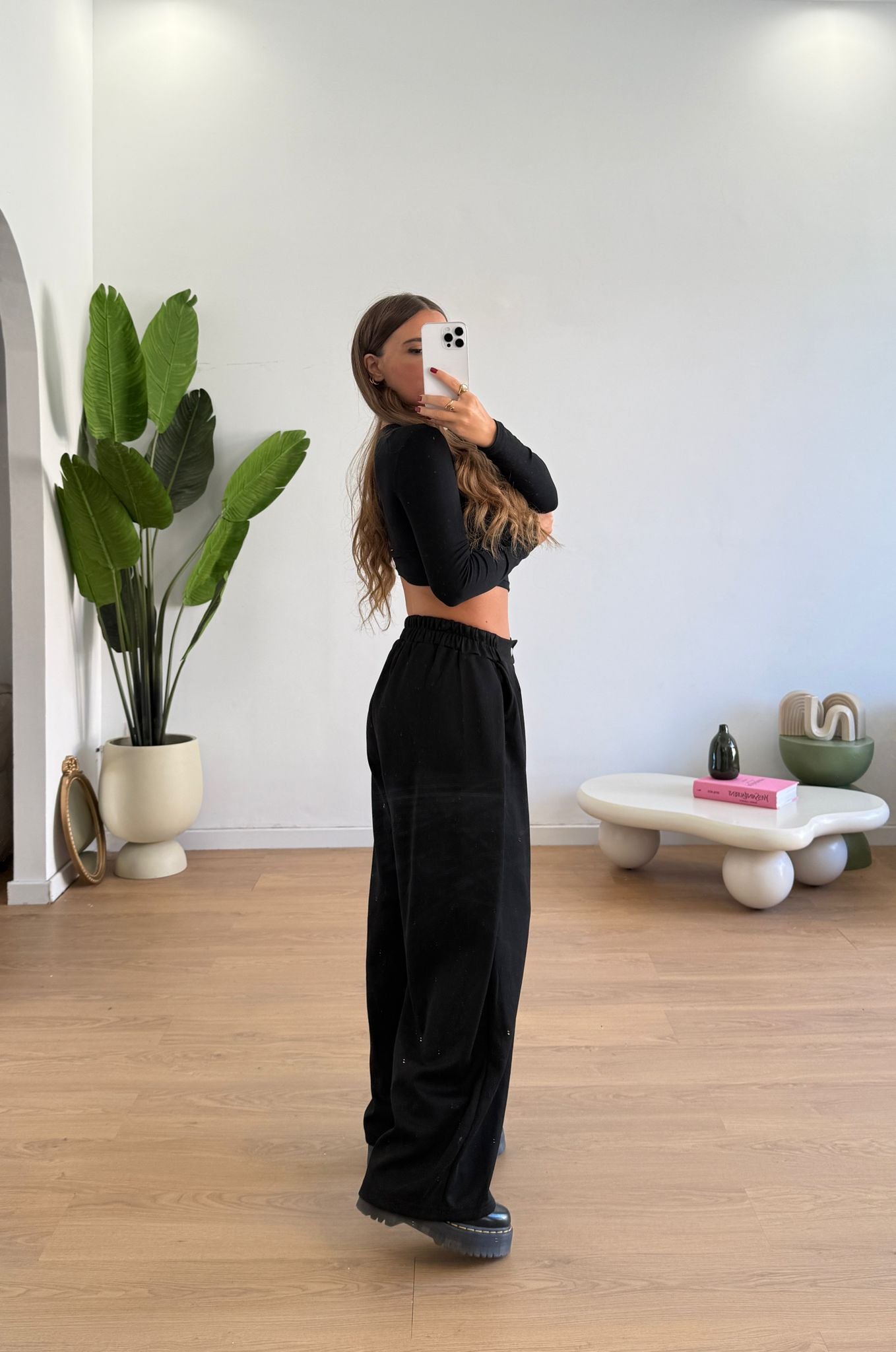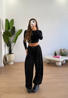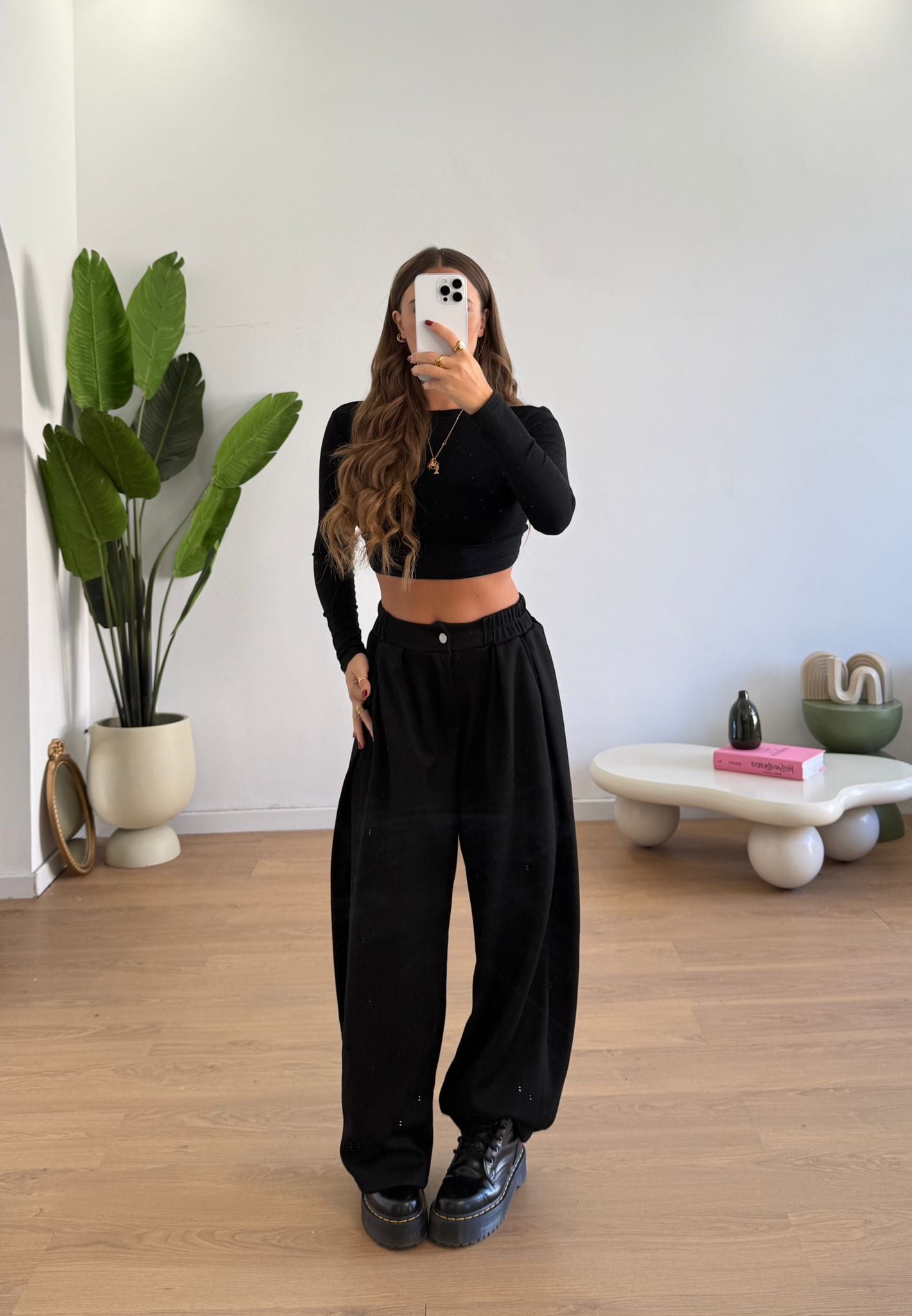 Pantatuta da donna modello ballon con elastico in vita e bottoncino. Veste regolarmente la propria taglia, la modella indossa taglia S/M.