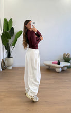 Pantatuta da donna modello ballon con elastico in vita e laccio regolabile e veste regolarmente la propria taglia e la modella indossa taglia S/M