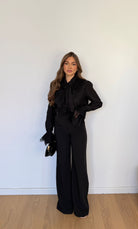 Pantalone Angie offre un'esperienza esclusiva ed elegante. Si tratta di un pantalone da donna a palazzo con vita alta, in una qualità eccezionale che non deluderà. Dai un tocco di lusso al tuo guardaroba con questa creazione elegante e di alta qualità!