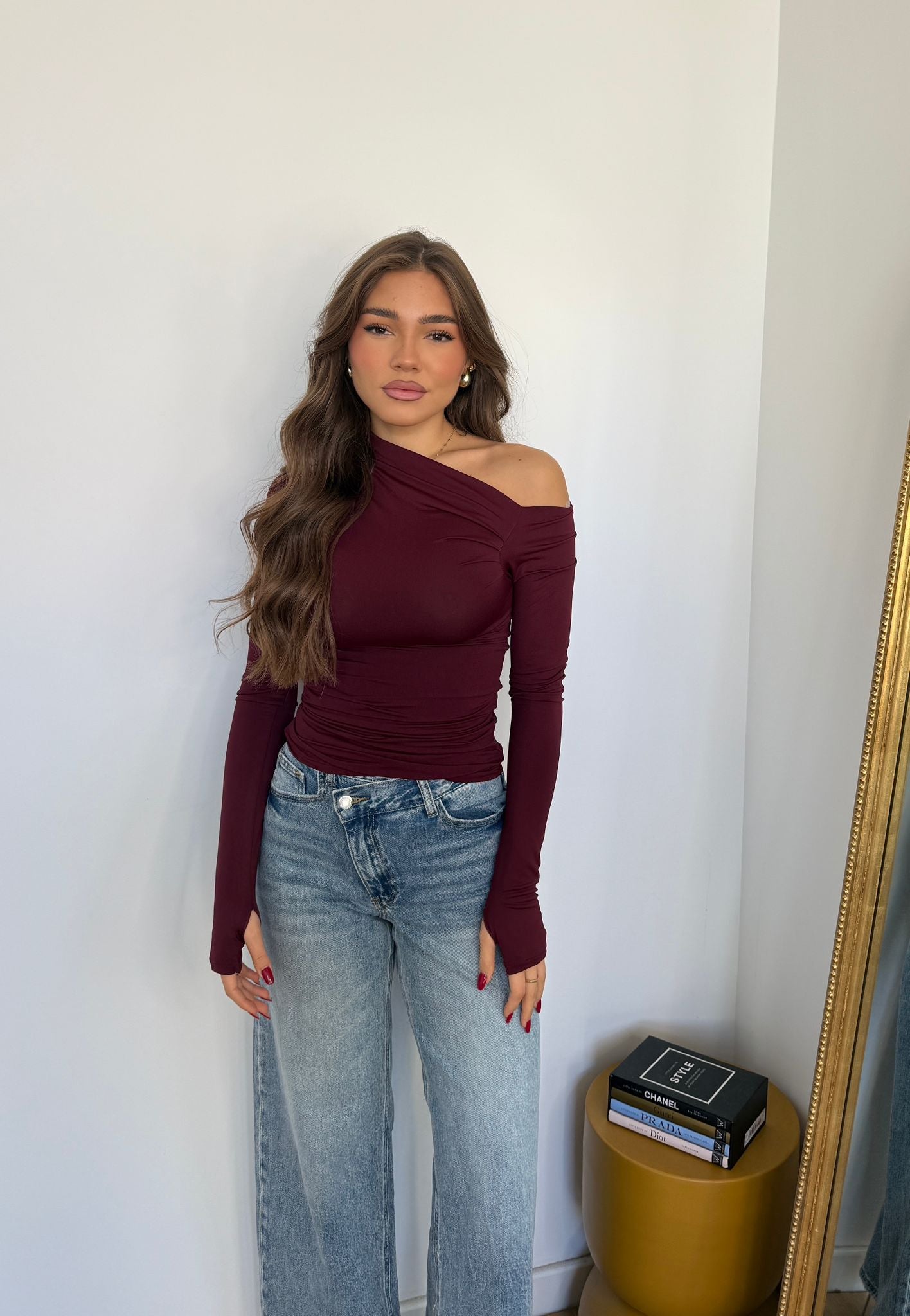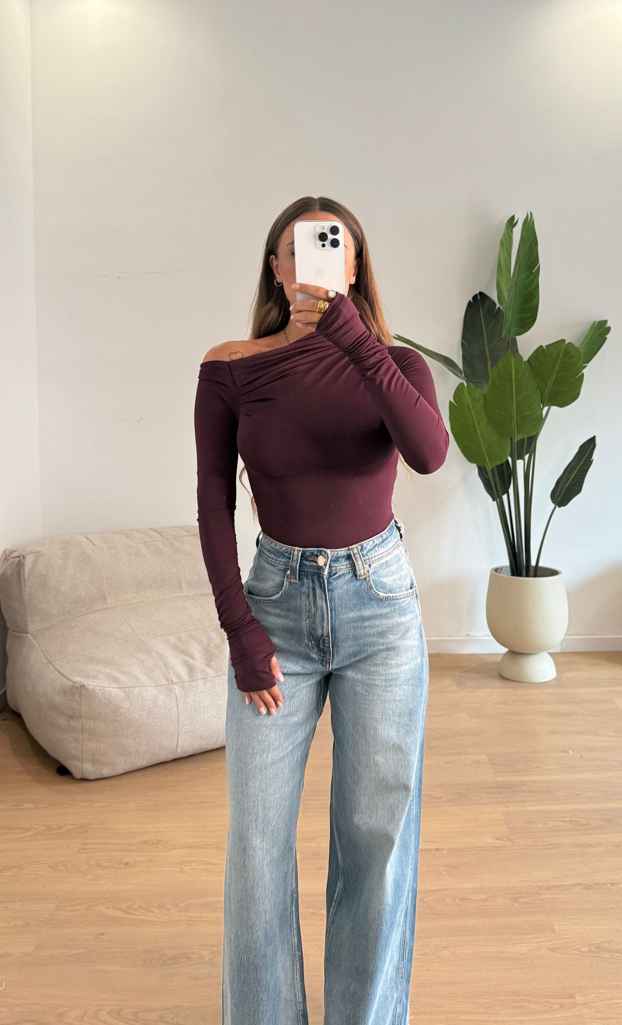 maglia da donna in licra con arricciatura sulla parte iniziale,si può' indossare anche in modo simmetrica