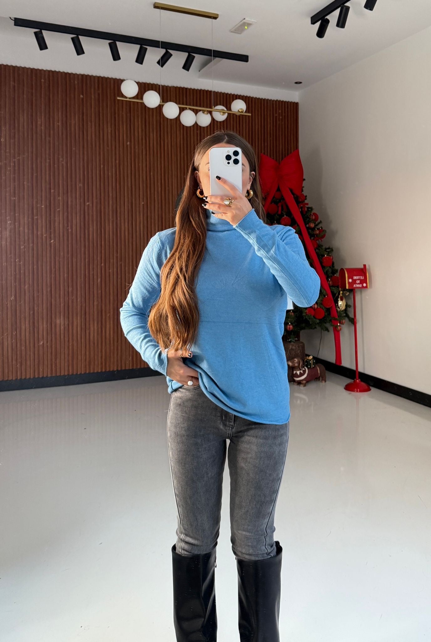 Maglioncino da donna in cotone, tessuto elasticizzato, collo alto.Taglia unica, veste bene fino ad una taglia 44/46.