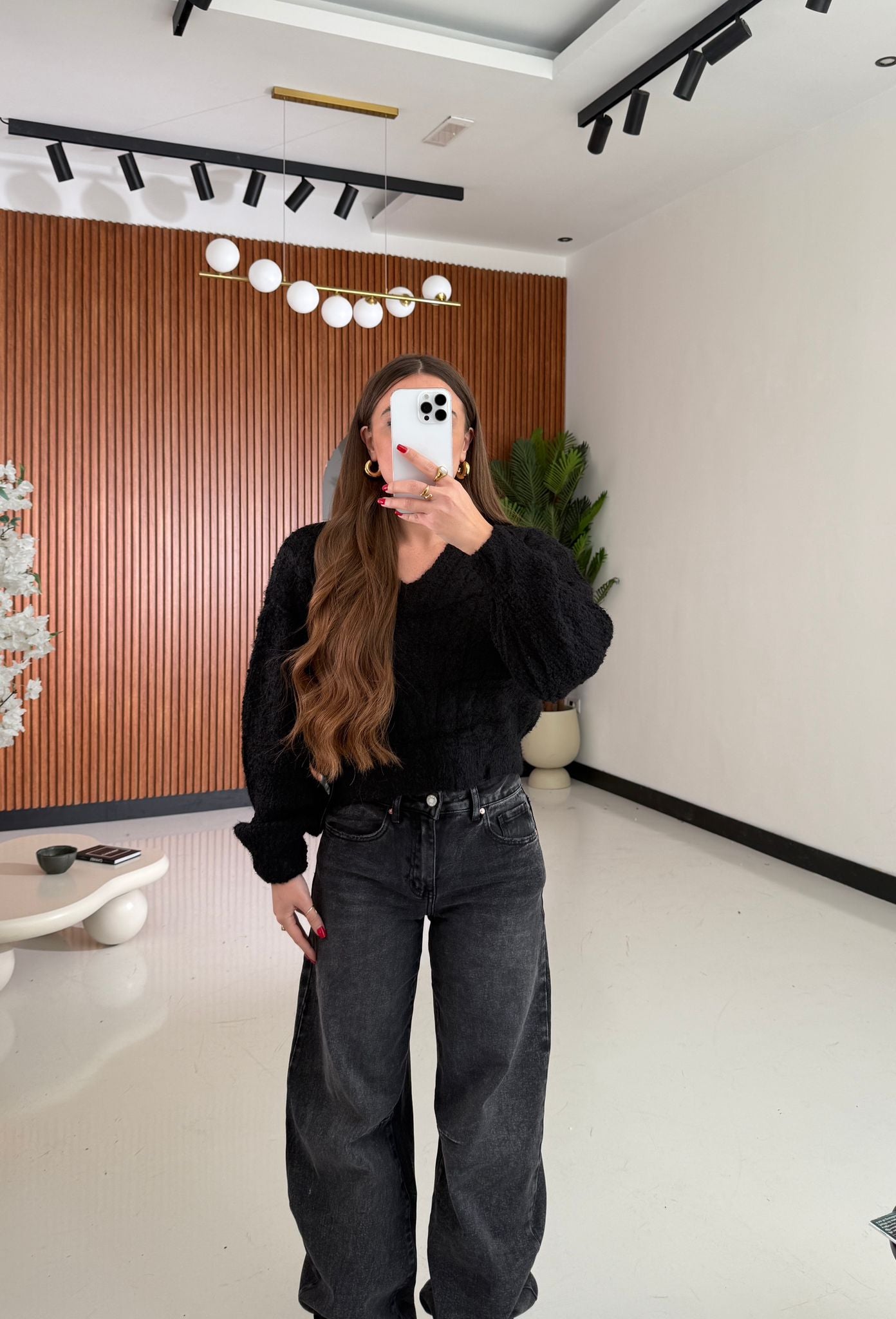 Maglioncino da donna in lana rasata, tessuto elasticizzato. Taglia unica, veste bene fino ad una taglia M/L piena.