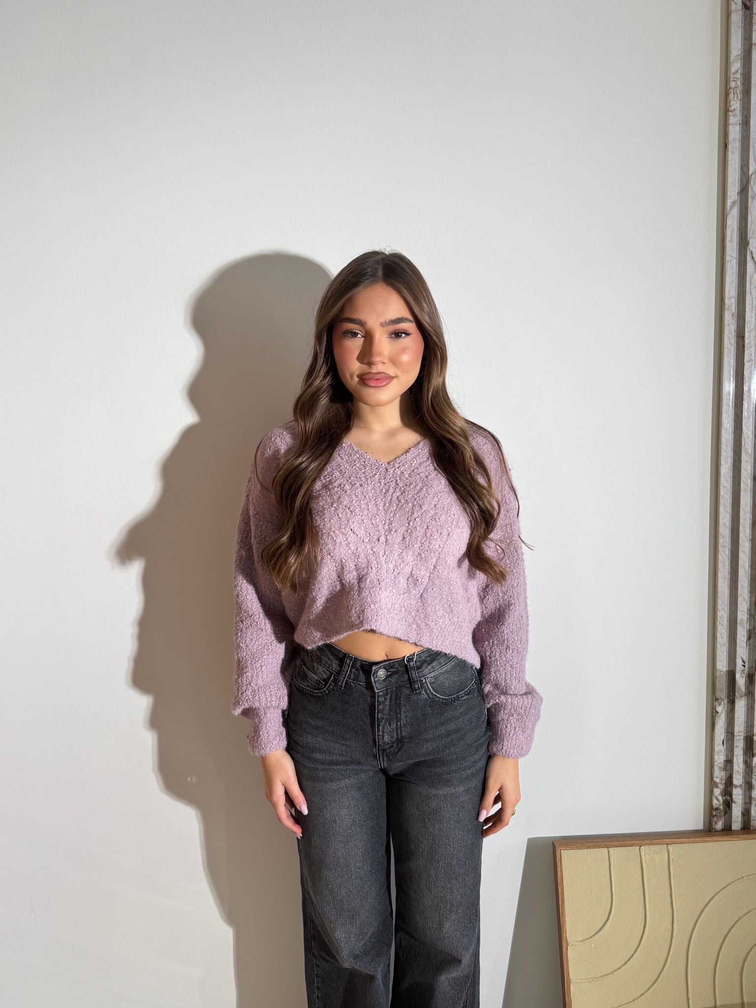 Maglioncino da donna in lana rasata, tessuto elasticizzato. Taglia unica, veste bene fino ad una taglia M/L piena.