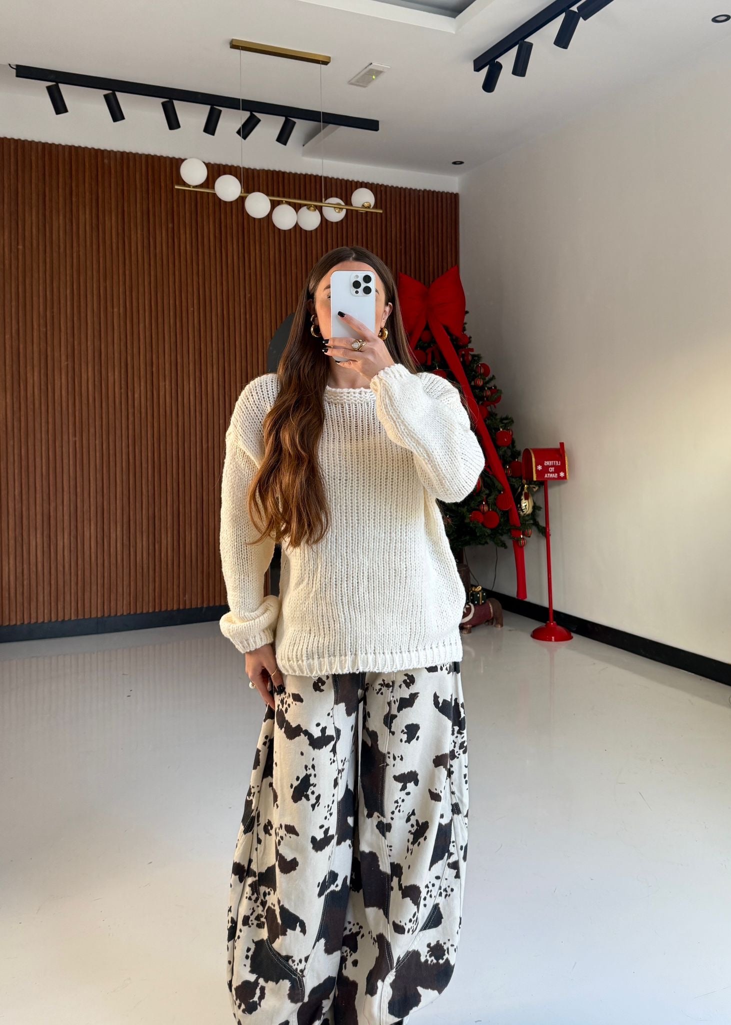 Maglione da donna a uncinetto, tessuto elasticizzato. Taglia unica, veste bene fino ad una taglia M/L.