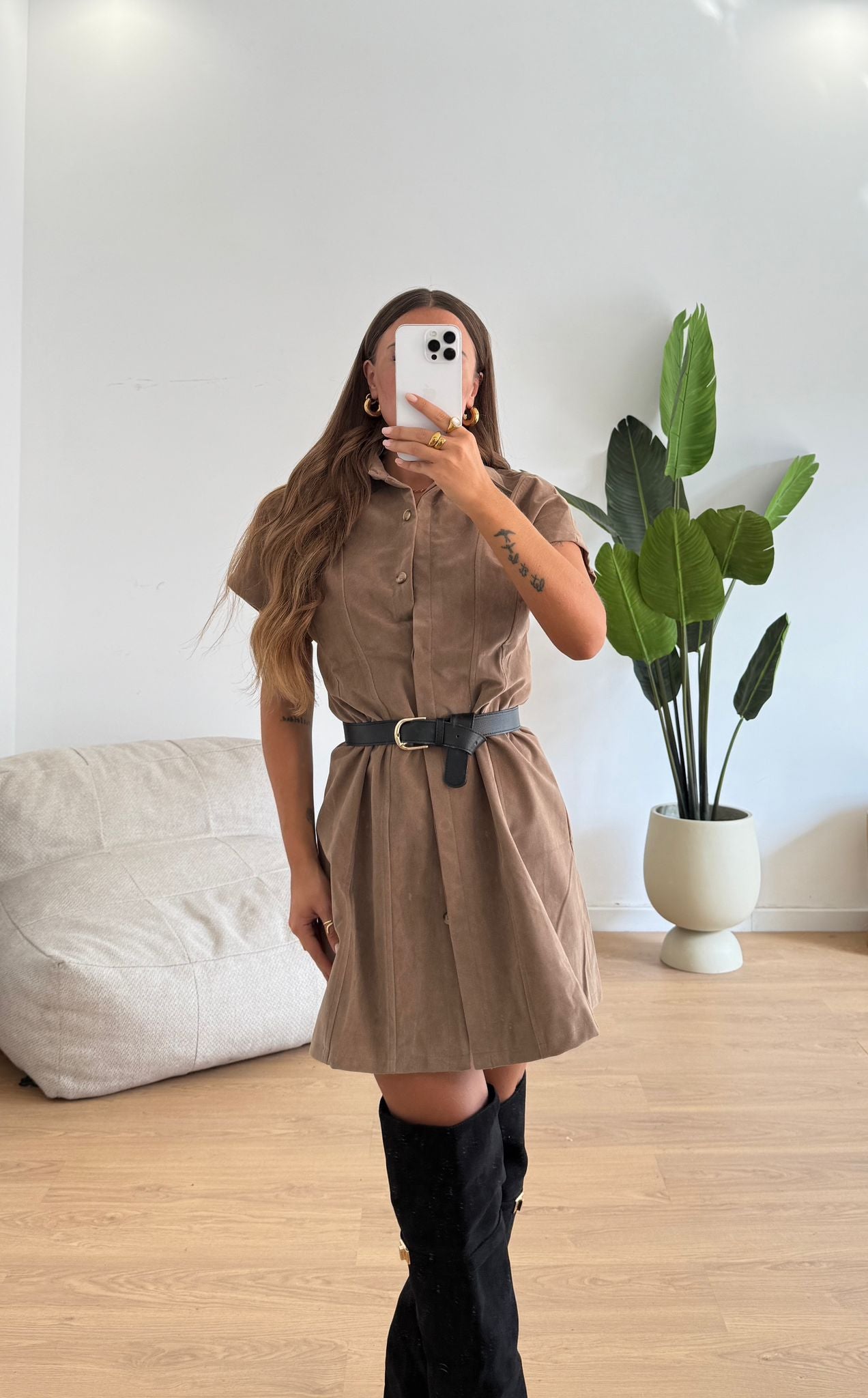 Abitino da donna tessuto camoscio e veste regolarmente la propria taglia e la modella indossa taglia S