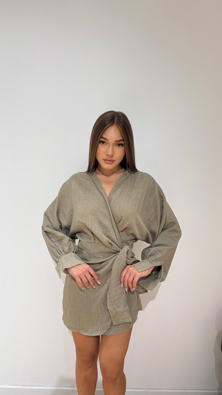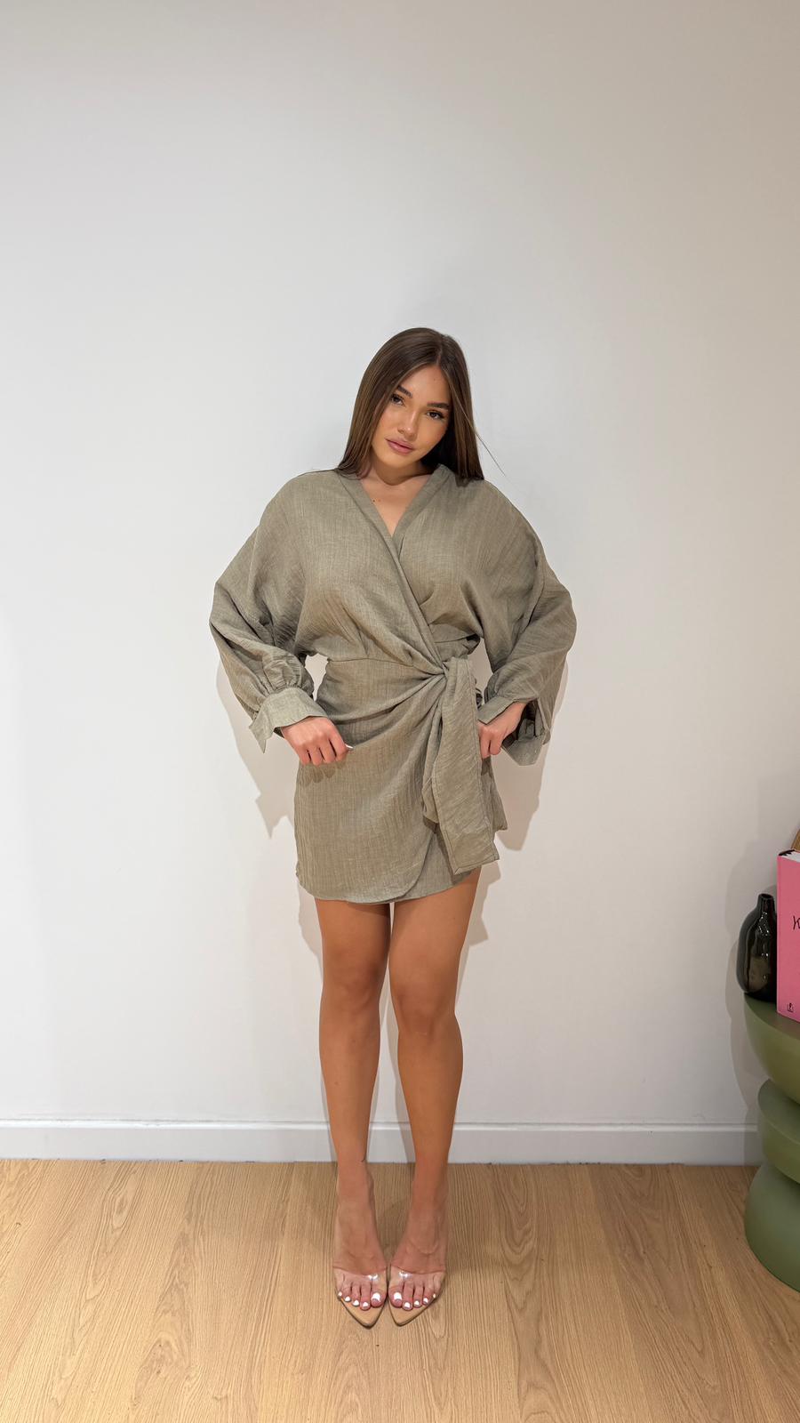 Abitino da donna in semi Lino a portafoglio e vestirà bene fino ad una M/L