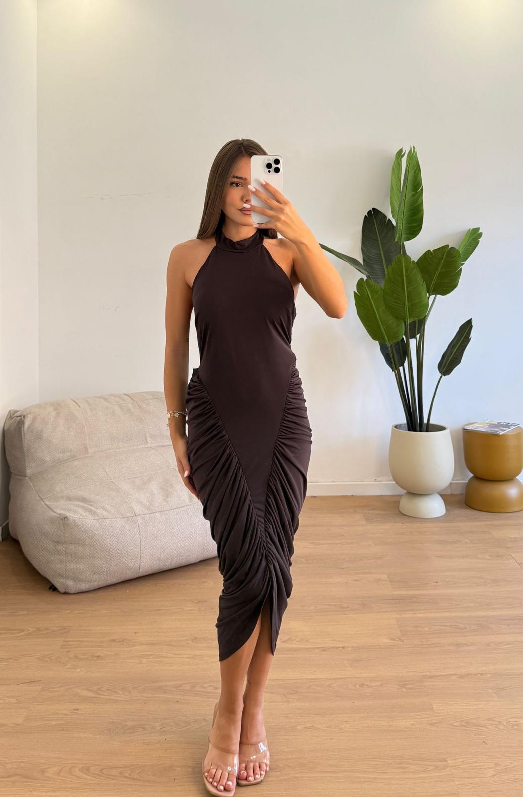 Abito da donna con coppe imbottite e schiena scoperta, tessuto elasticizzato e vestirà bene fino ad una M piena