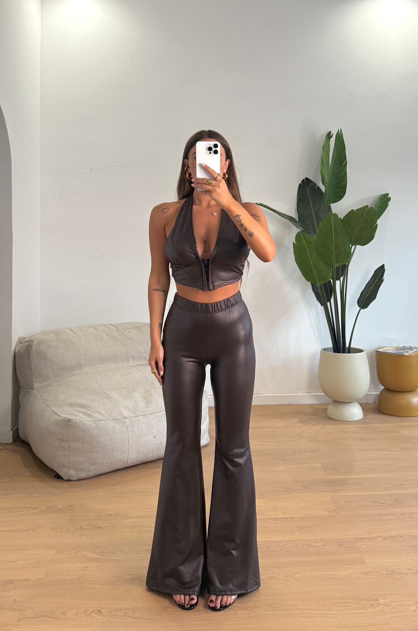 Coordinati da donna composto da top e pantalone a zampa con elastico in vita e vestirà bene fino ad una M piena