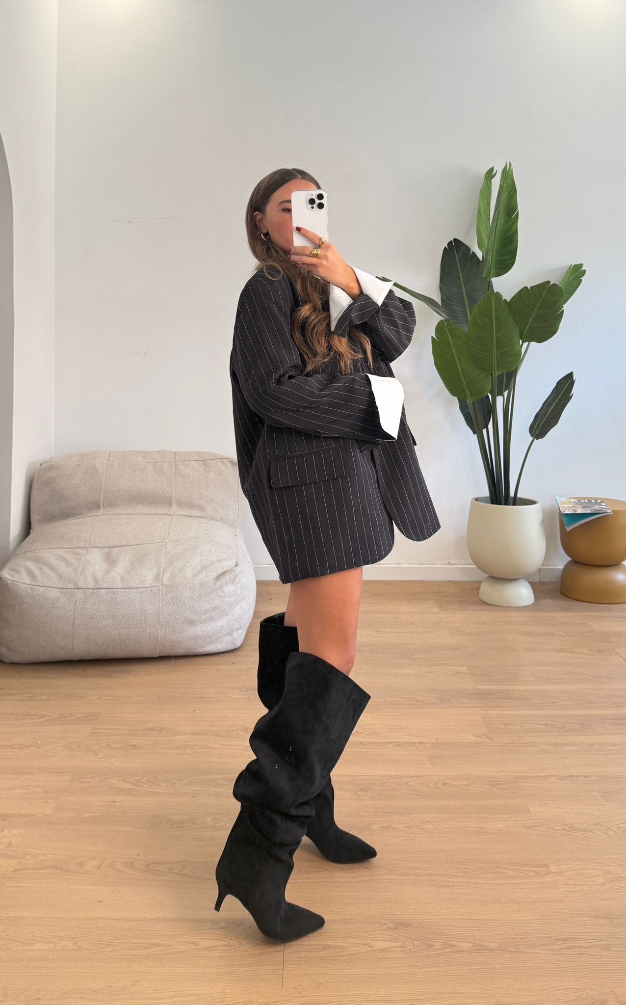 Giacca da donna gessata modello oversize con spalline imbottite e vestirà bene fino ad una M/L piena