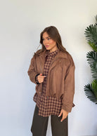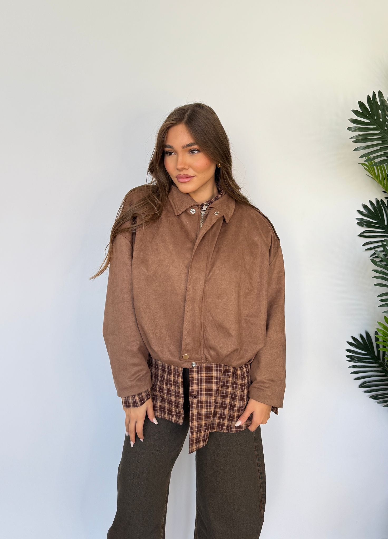 Giubbino da donna, tessuto camoscio, foderato internamente e veste bene fino ad una M/L.
