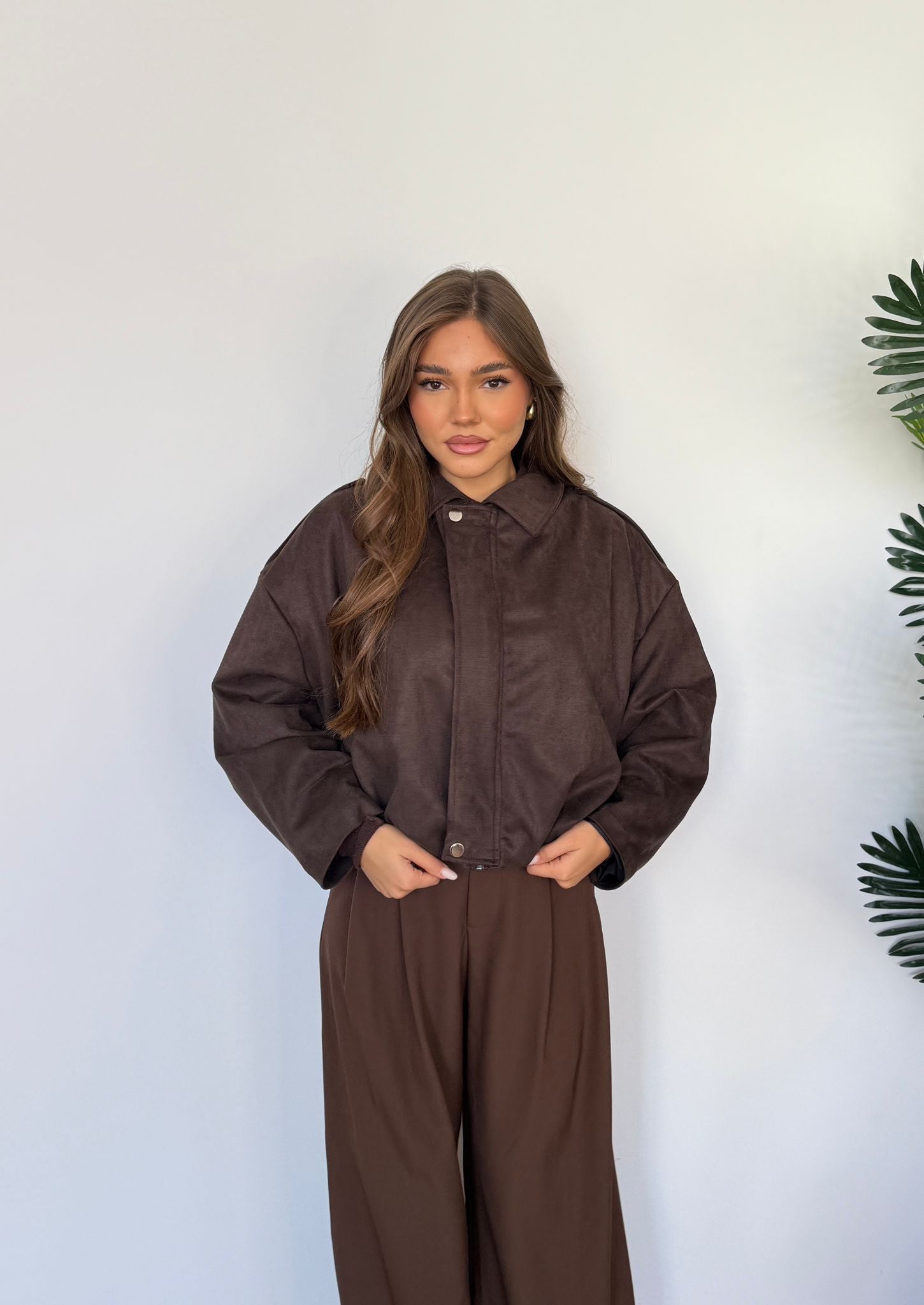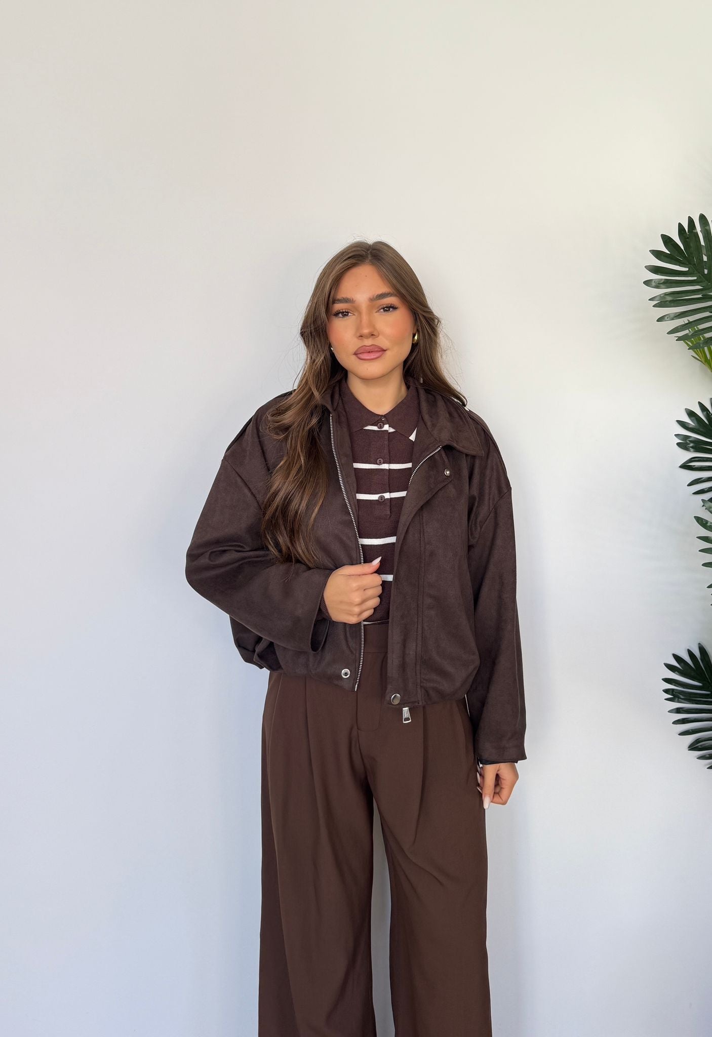 Giubbino da donna, tessuto camoscio, foderato internamente e veste bene fino ad una M/L.
