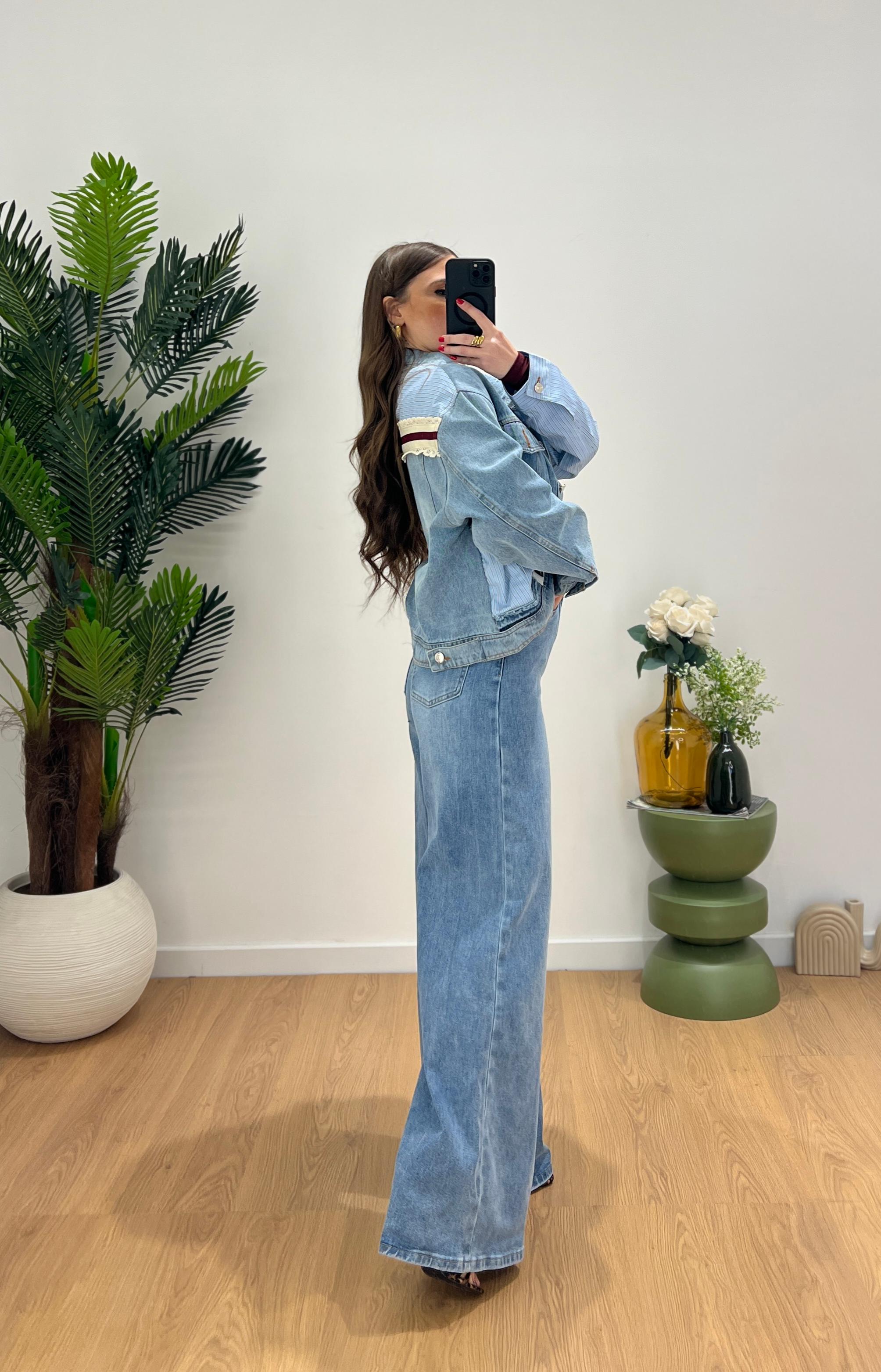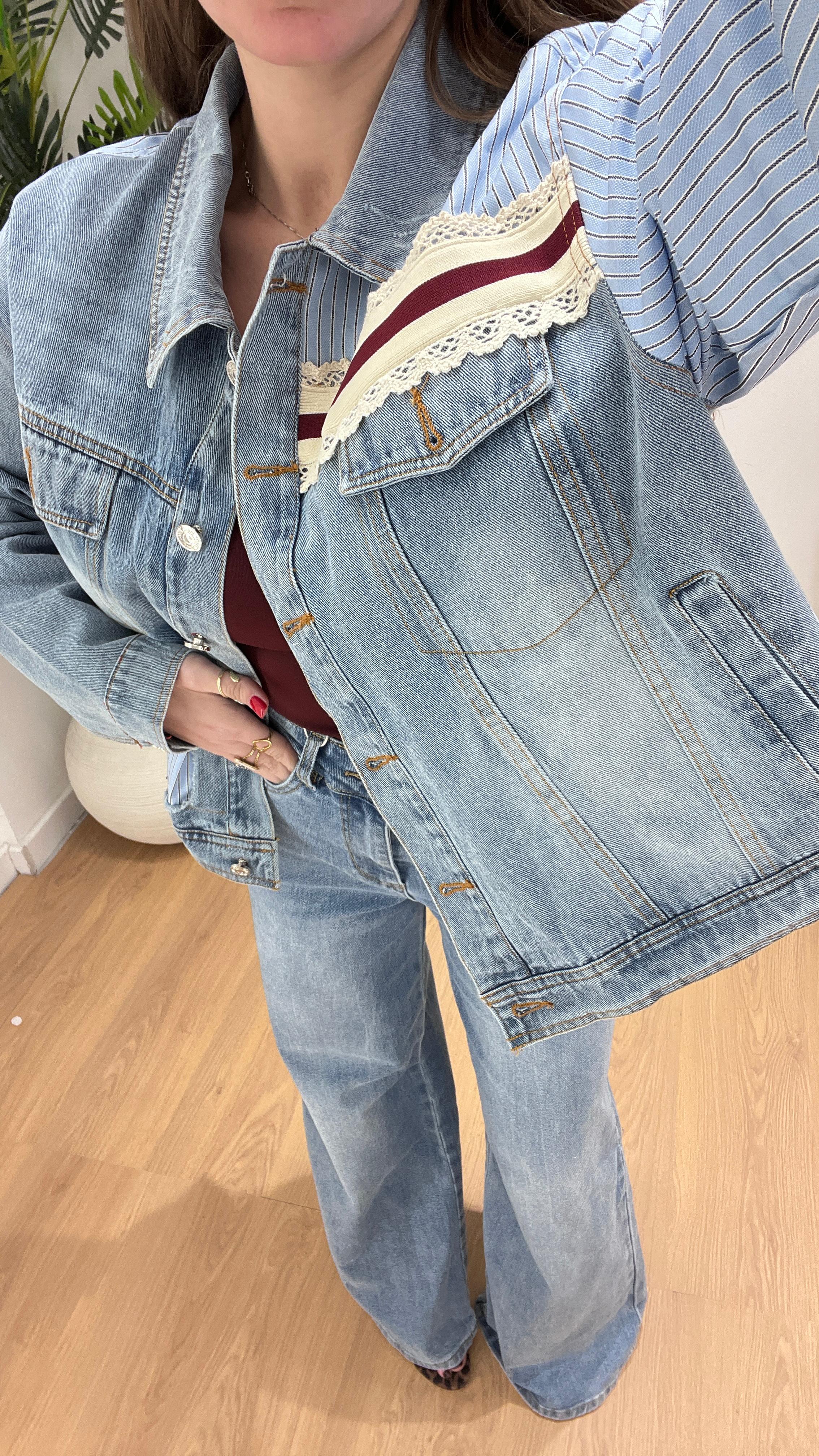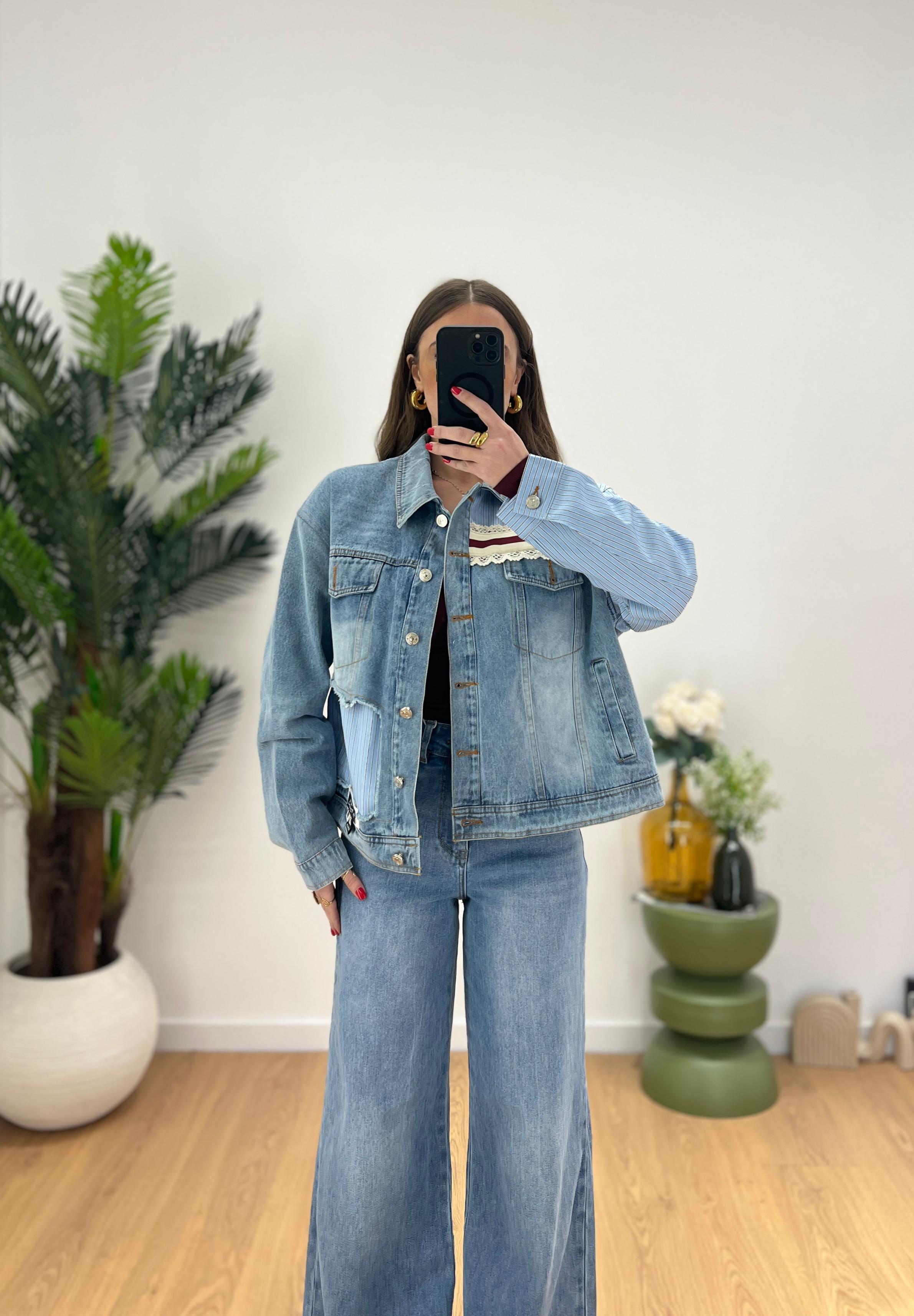 Giubbino da donna in denim chiaro con contrasto camicia e vestirà bene fino ad una L
