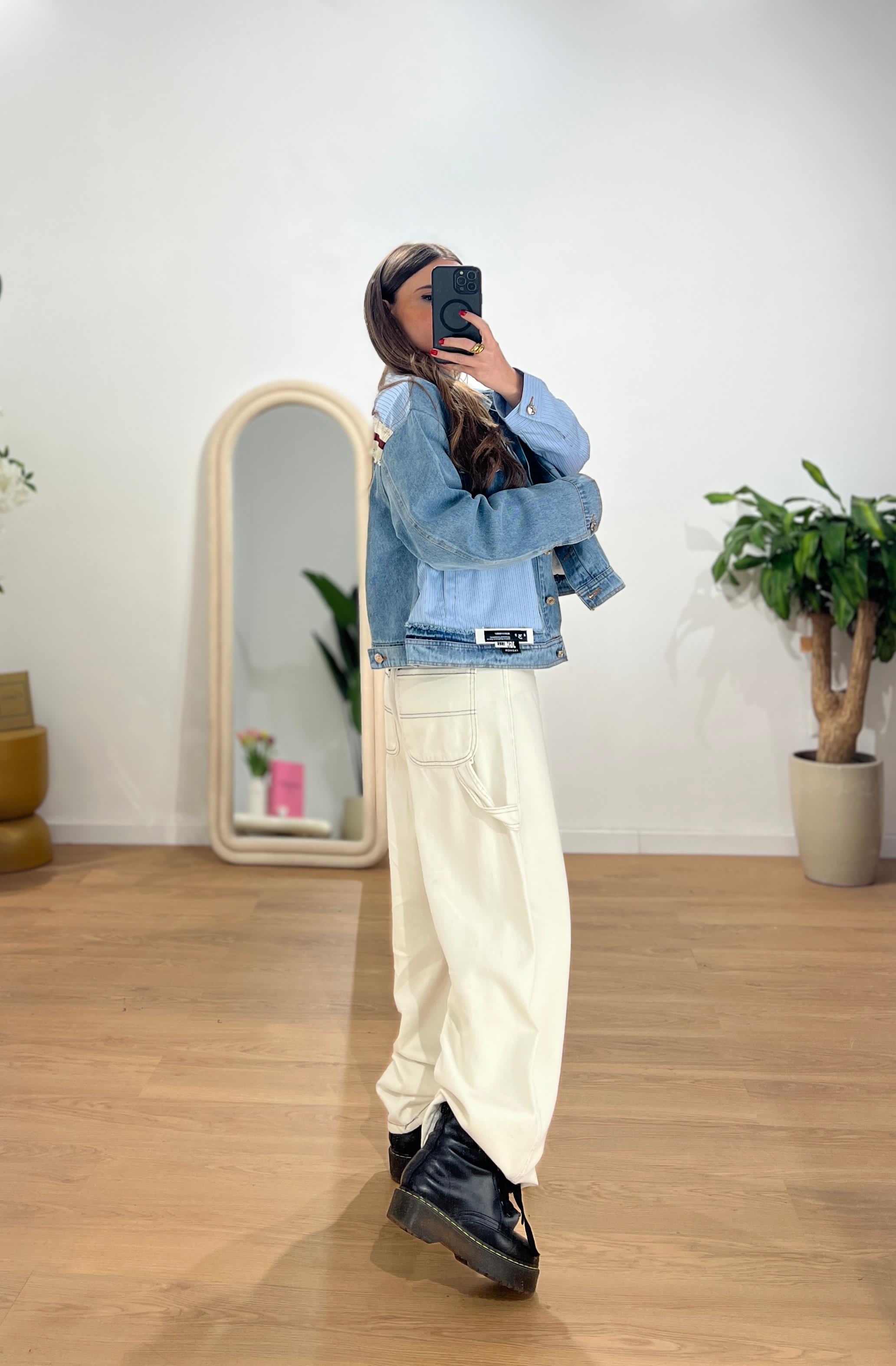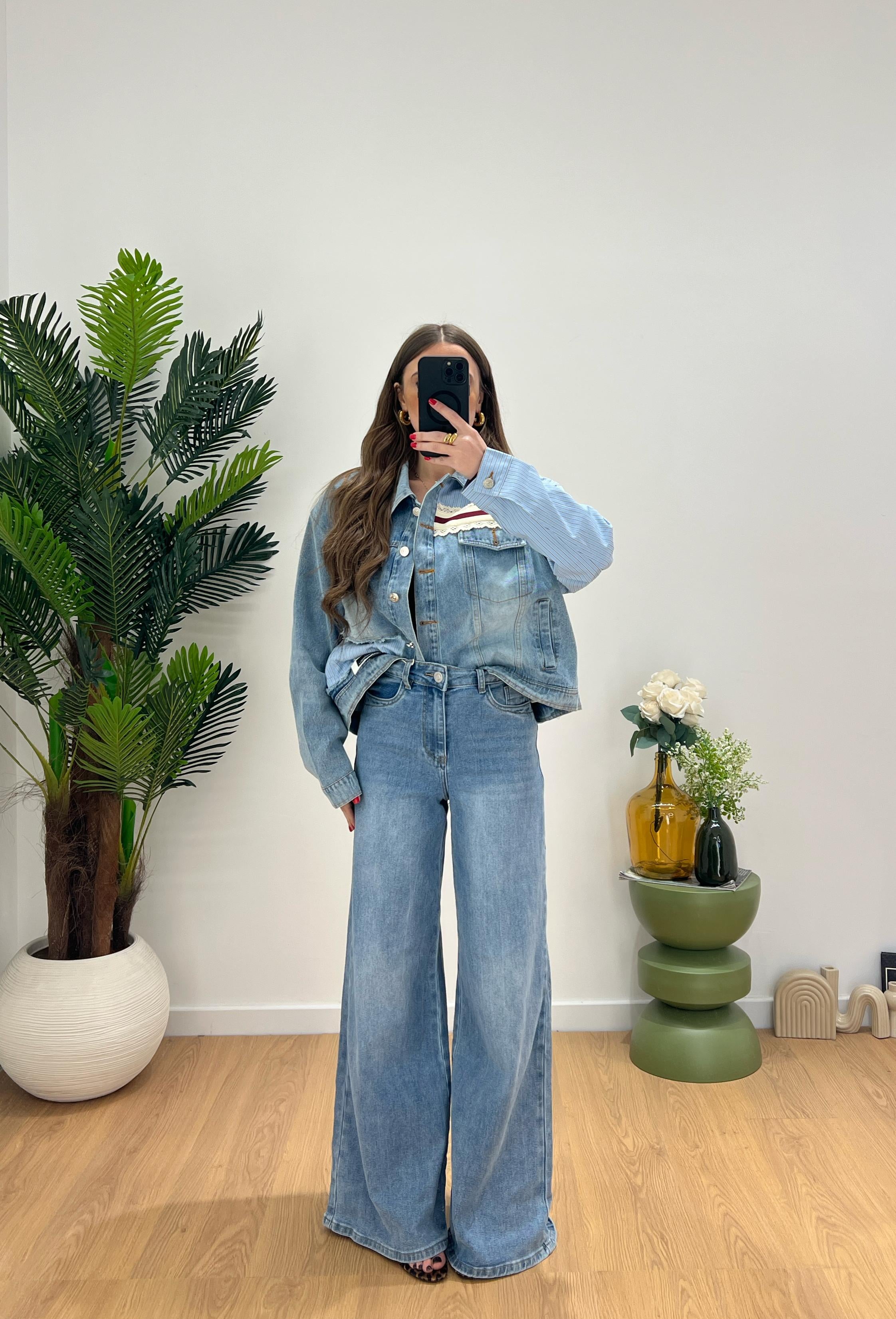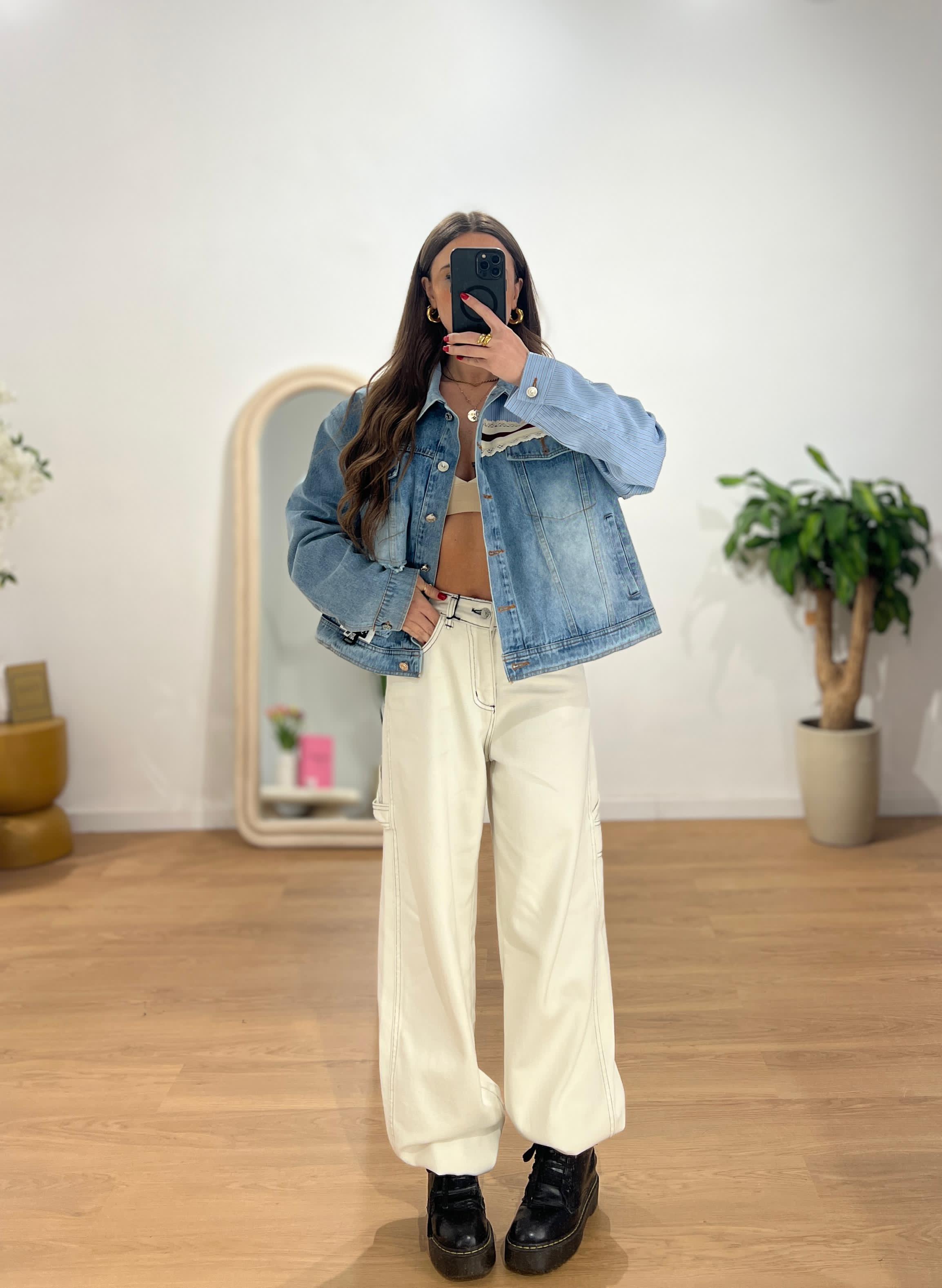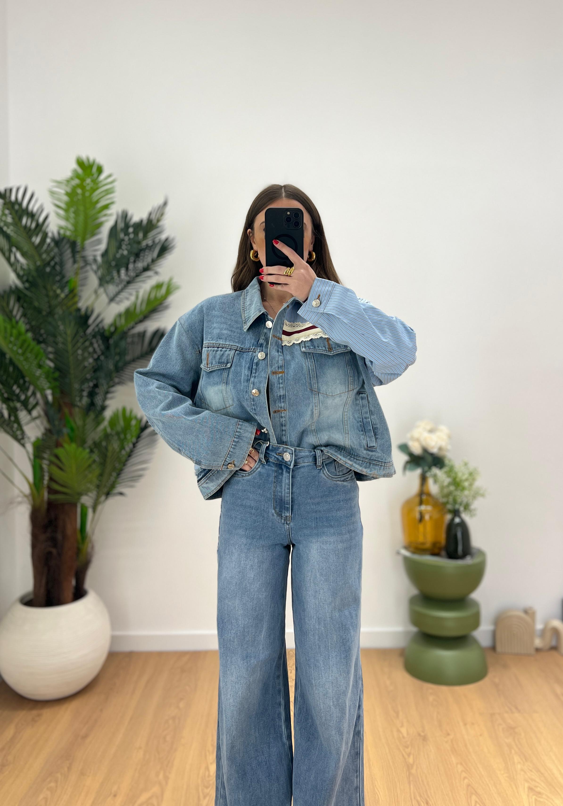 Giubbino da donna in denim chiaro con contrasto camicia e vestirà bene fino ad una L