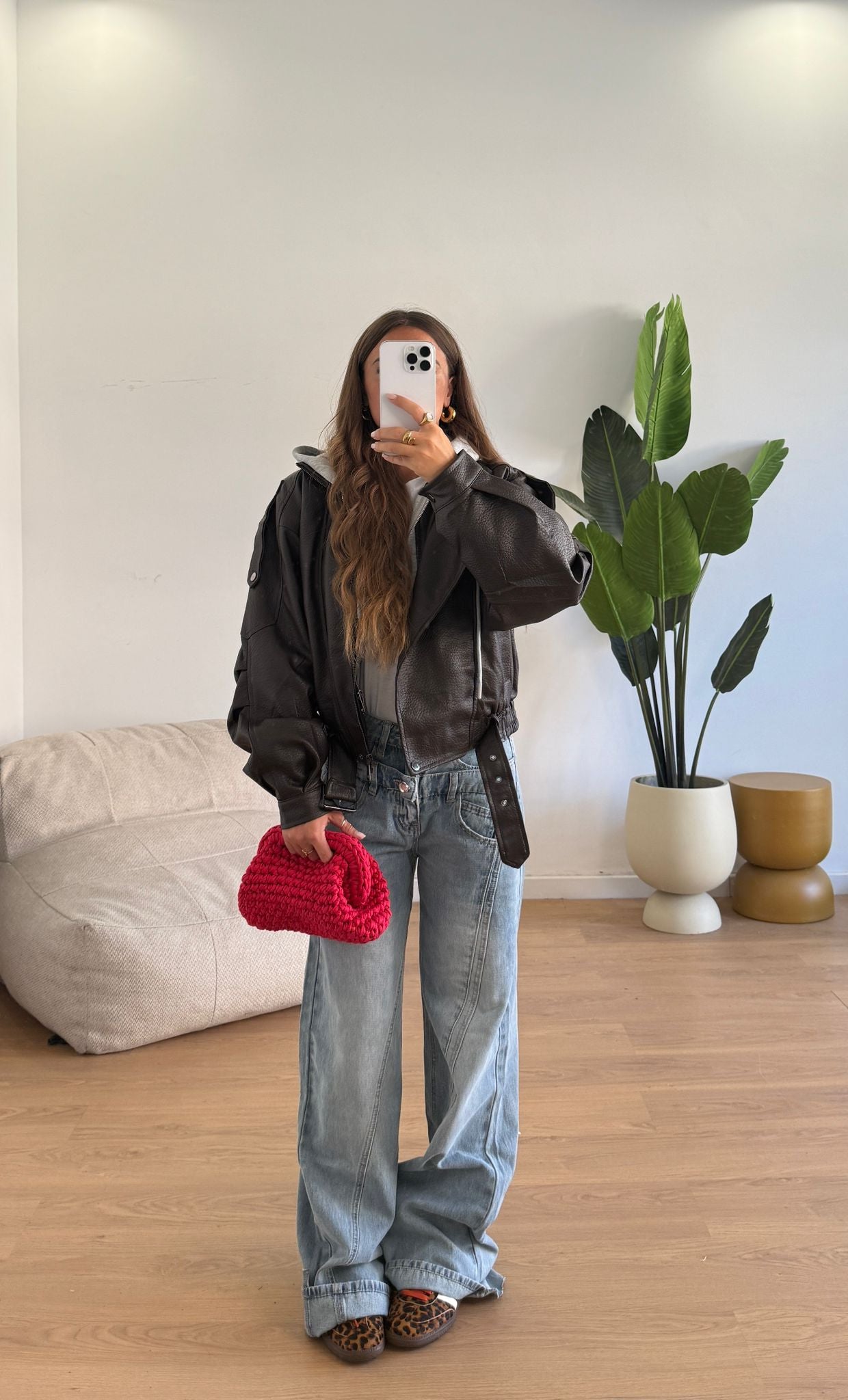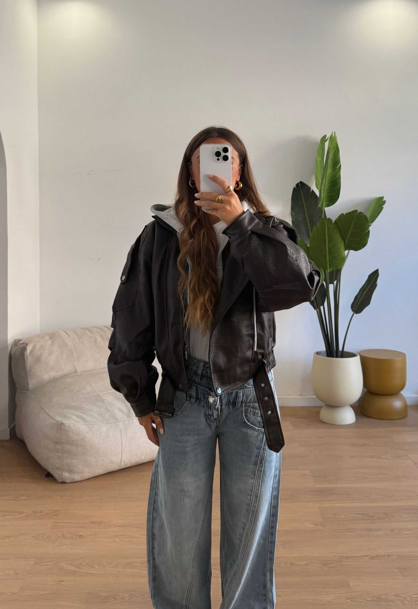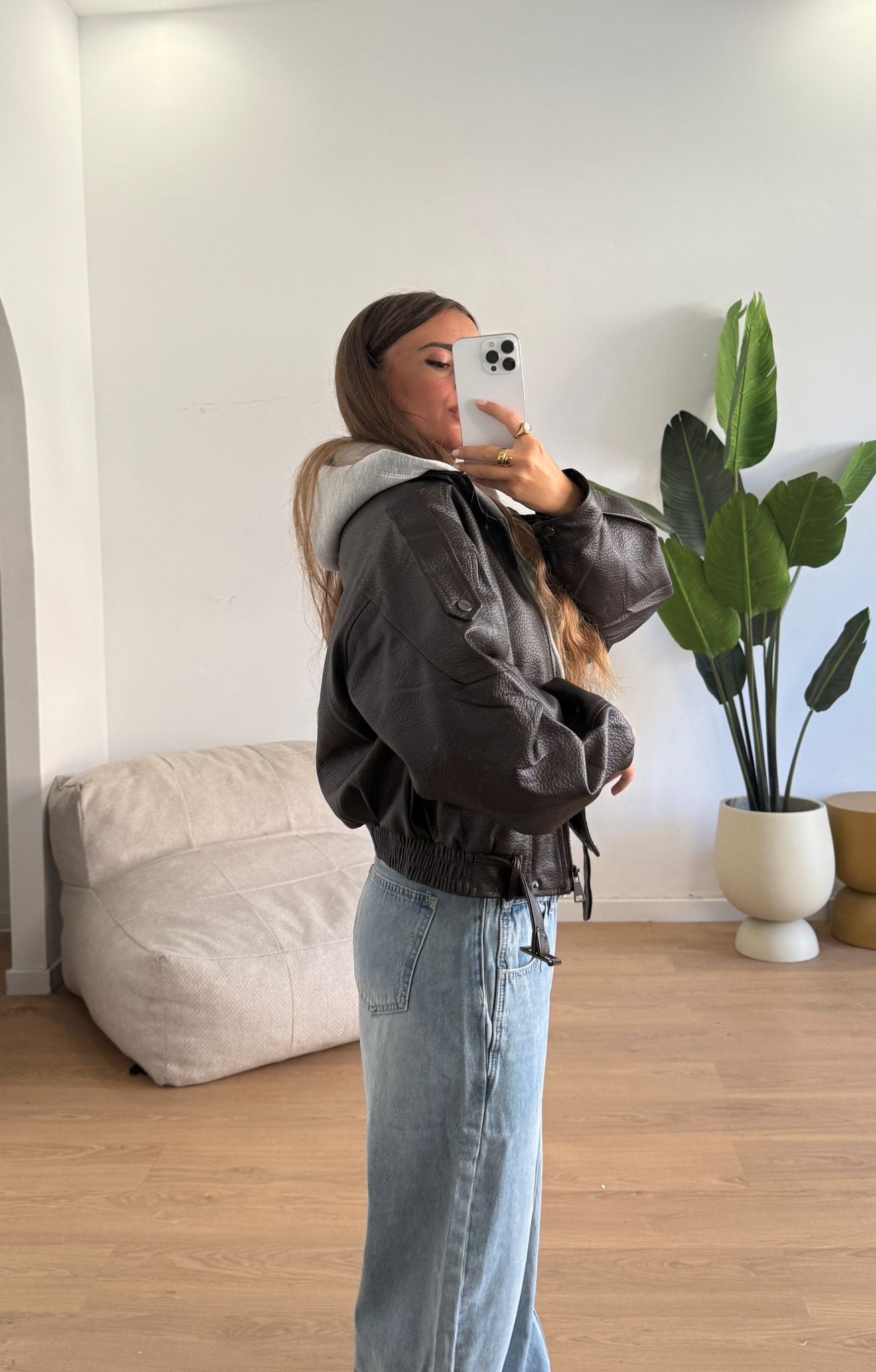 Giubbino da donna in ecopelle foderato internamente e veste regolarmente la propria taglia e la modella indossa taglia S