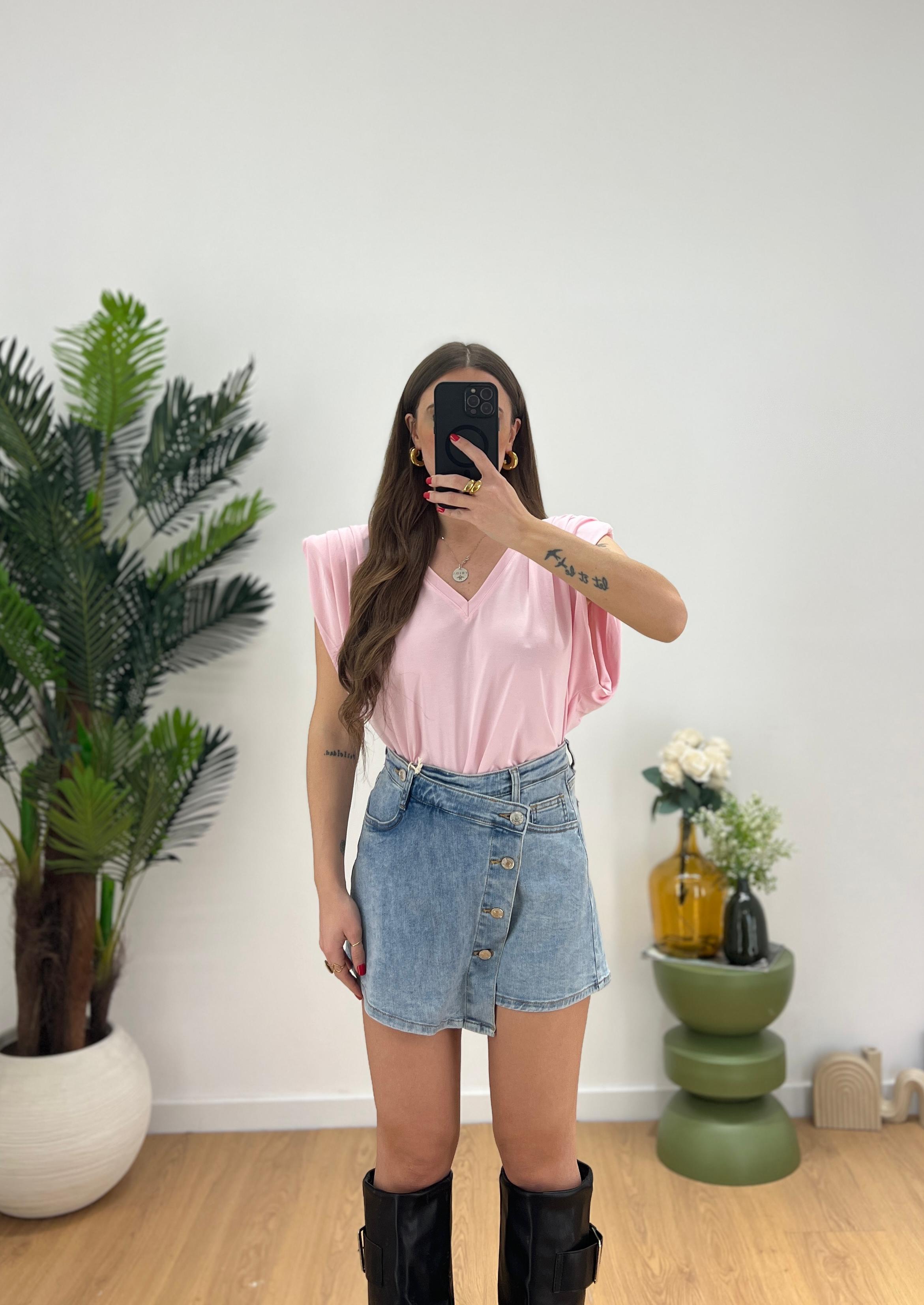 Shirt da donna con spalline, tessuto cotone leggero e scollo a V sul davanti e veste regolarmente la propria taglia e giusy indossa taglia S/M
