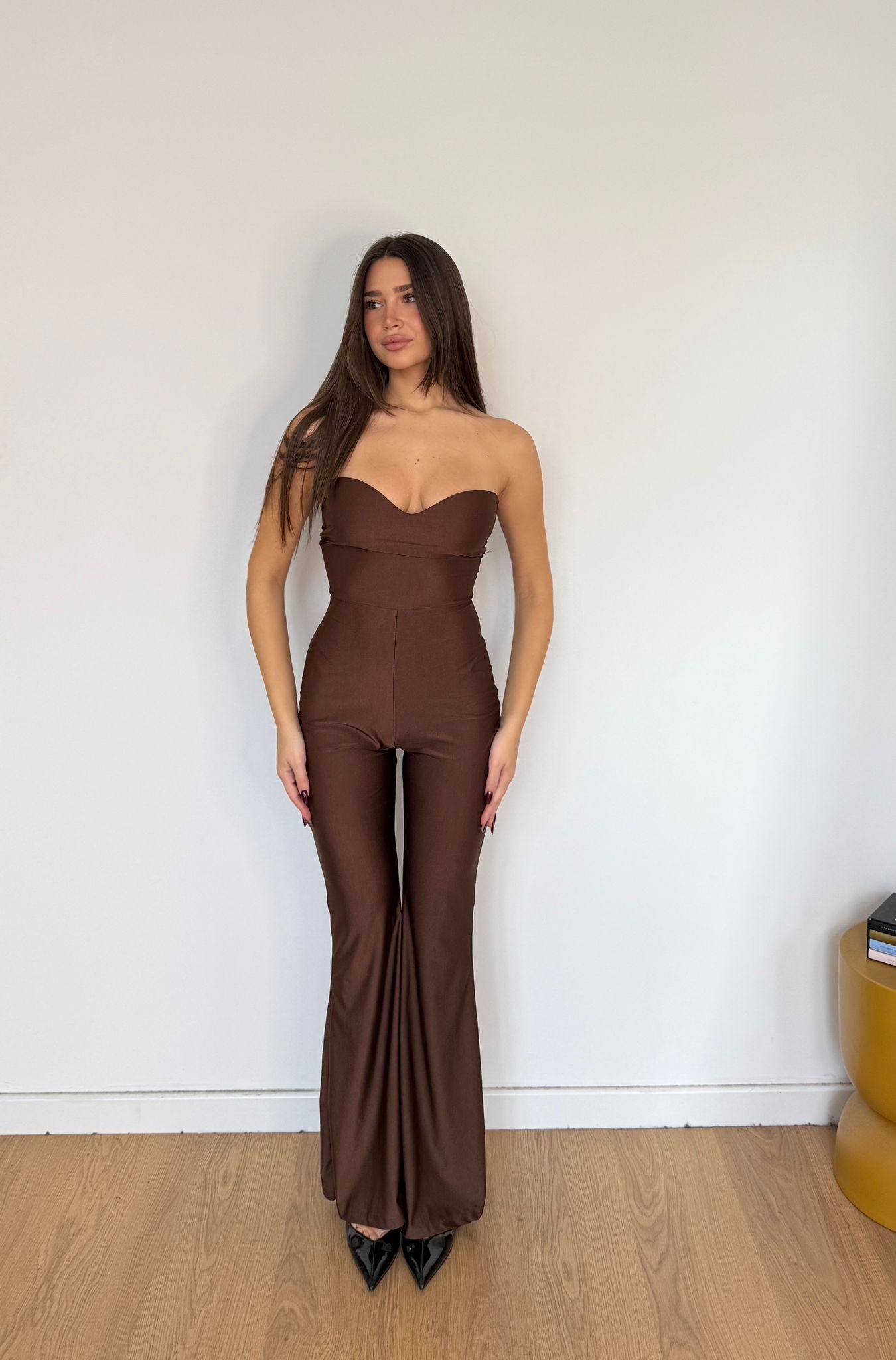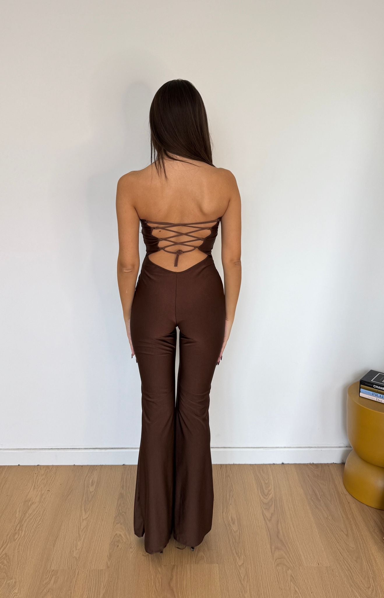 Tutone da donna a zampa in lycra con coppe imbottite e schiena scoperta ad intreccio, tessuti elasticizzato e vestirà bene fino ad una M/L