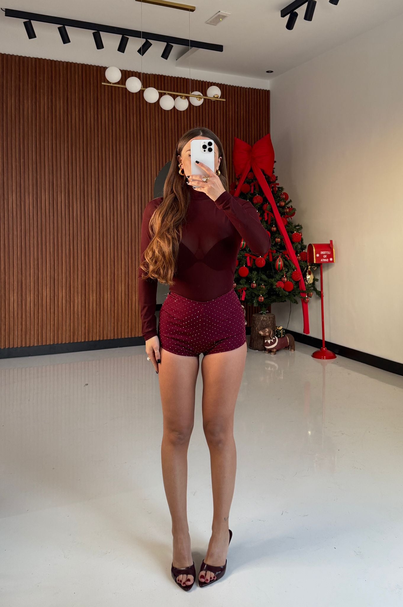 Coulotte da donna con brillantini e chiusura zip sul retro e veste regolarmente la propria taglia e la modella indossa taglia S