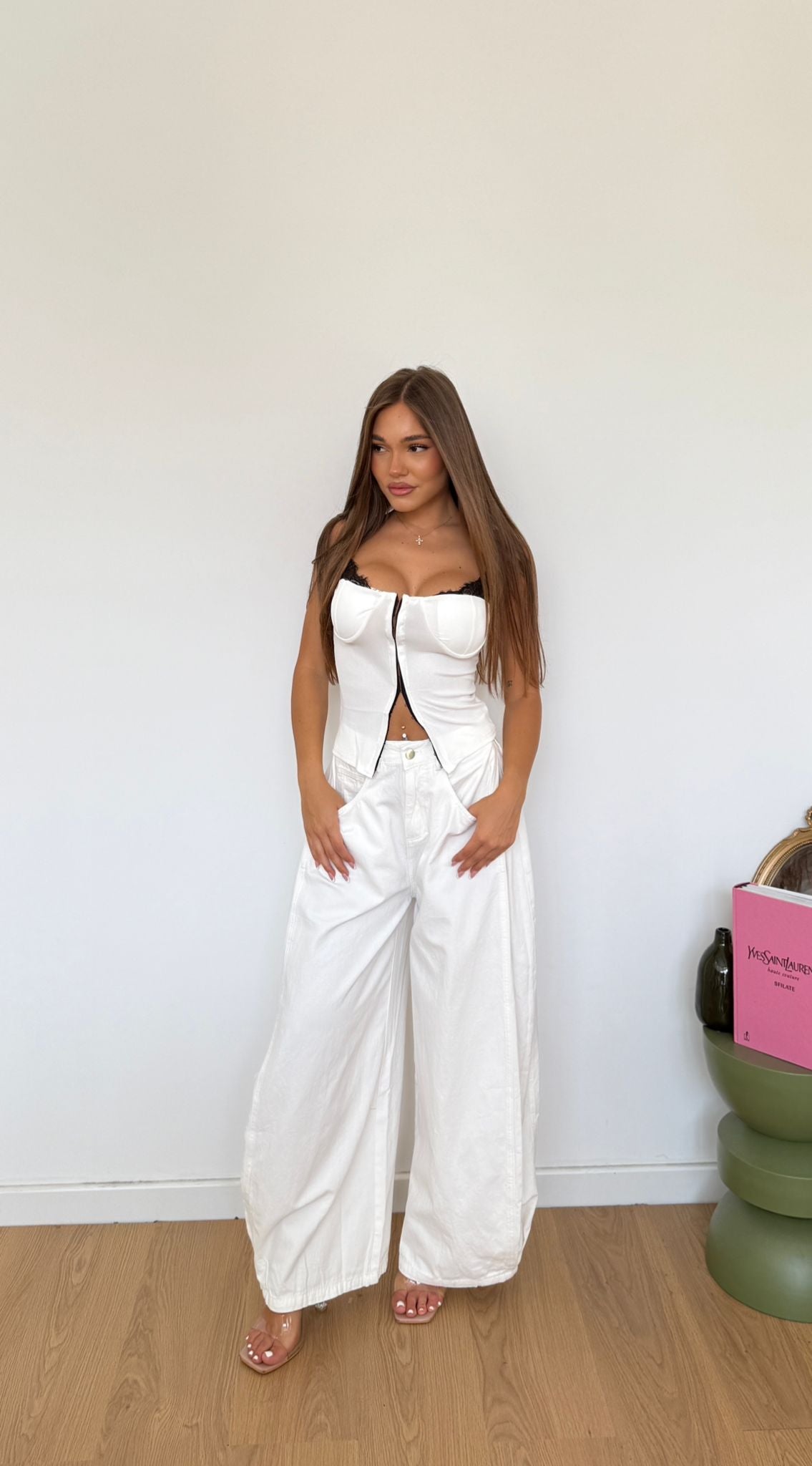 Jeans da donna modello ballon fit in tela fissa con elastico sul finale e veste regolarmente la propria taglia e Giusy indossa taglia S