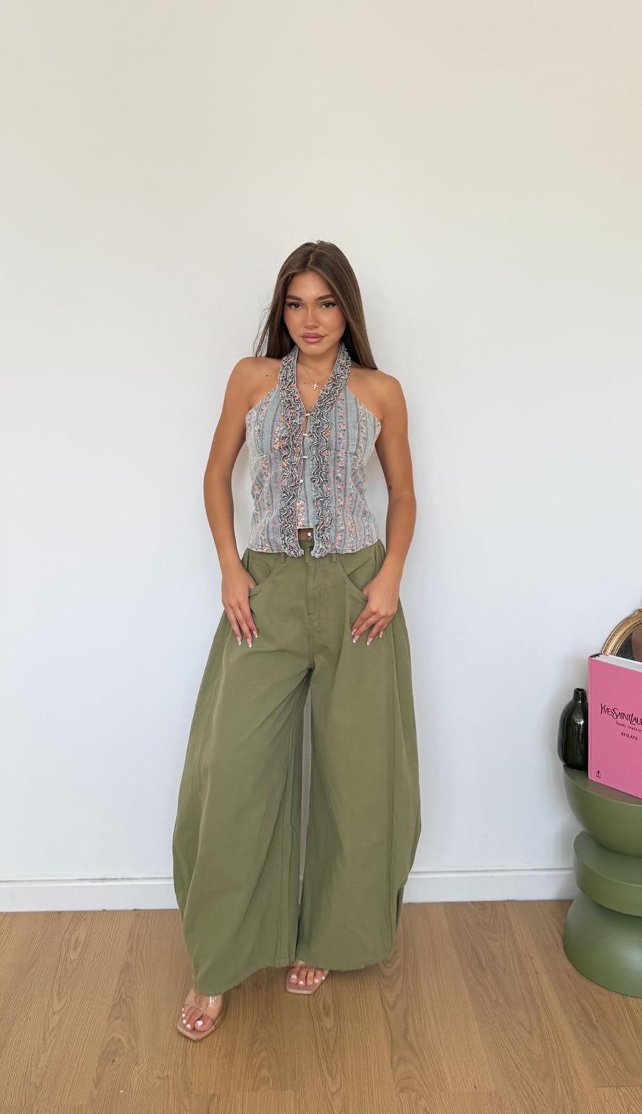 Jeans da donna modello ballon fit in tela fissa con elastico sul finale e veste regolarmente la propria taglia e Giusy indossa taglia S
