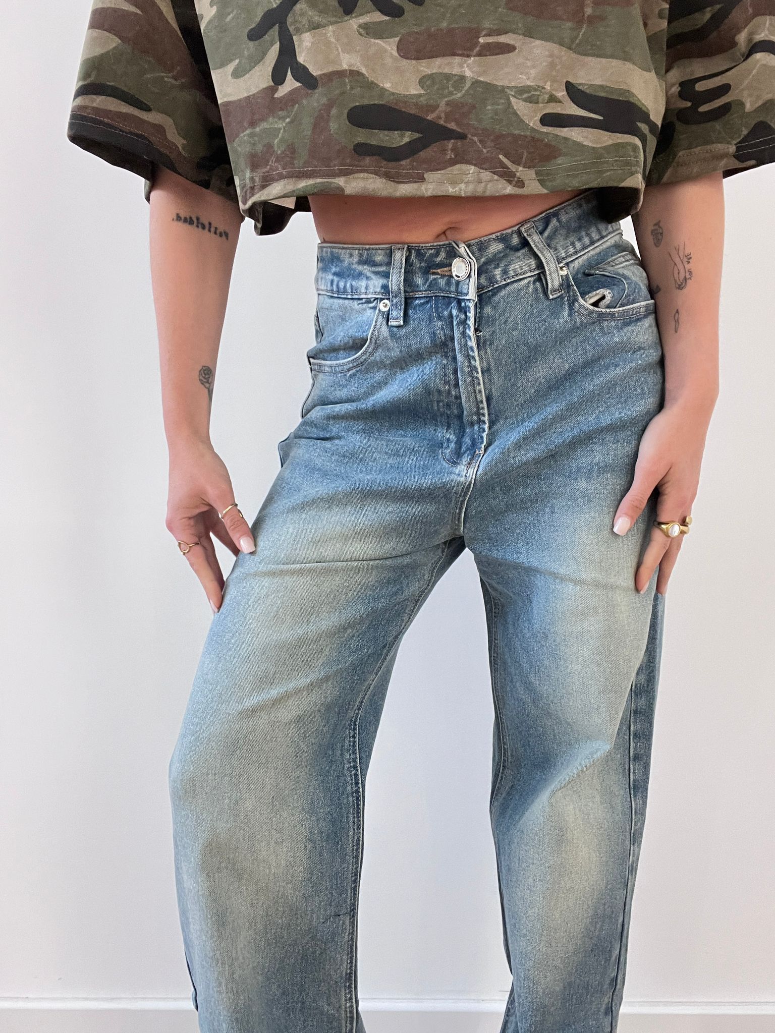 Jeans da donna in denim vestibilita' regolare e giusy indossa taglia M
