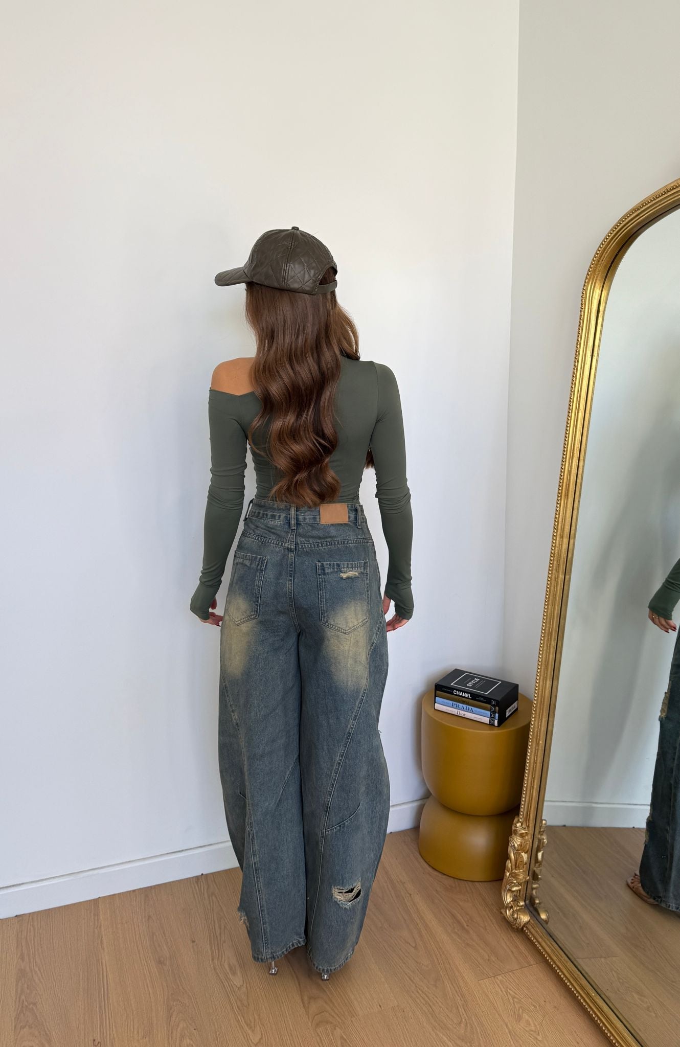 Jeans da donna in denim effetto slavato, tela fissa non elasticizzato modello leggermente ballon e veste la propria taglia e la modella indossa taglia S