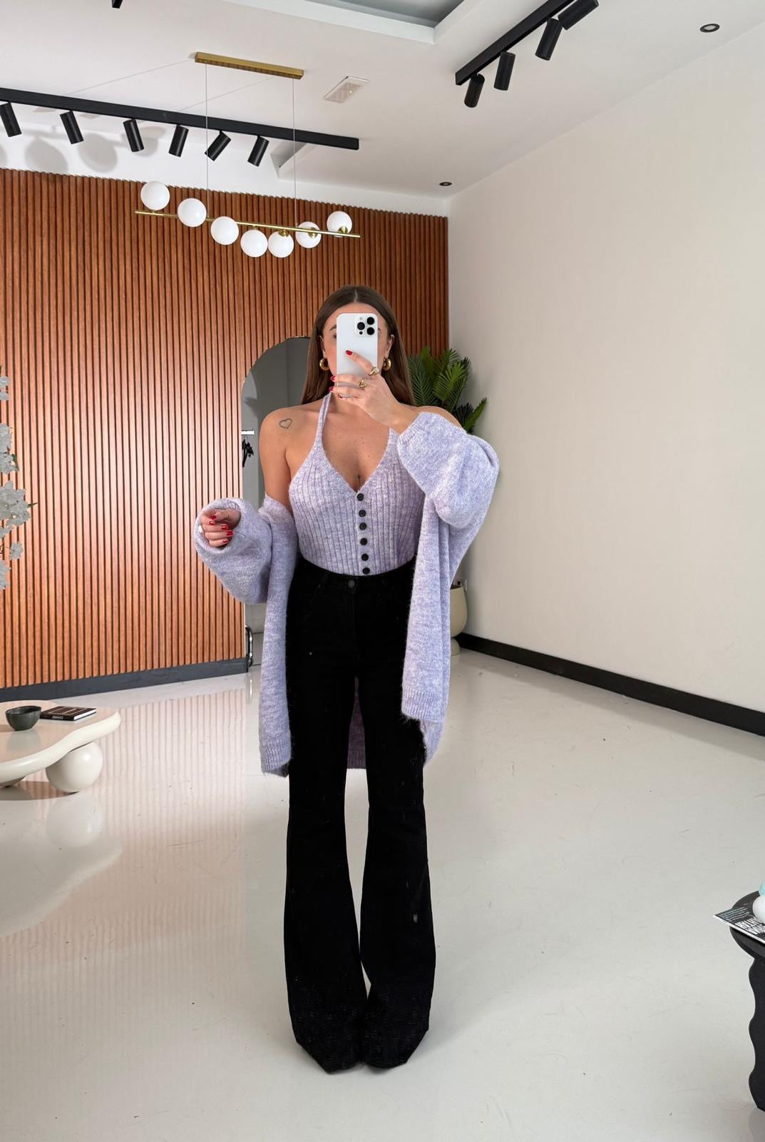 Jeans da donna a zampetta tessuto elasticizzato, vita alta e push-up sul retro. Veste regolarmente la propria taglia, la modella in foto indossa taglia XS ed è alta 1,65 e pesa 52/53 kg.