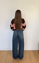Jeans da donna in denim tessuto semi elasticizzato con cintura compresa e piegone sul finale cucito e veste regolarmente la propria taglia e la modella indossa taglia XS