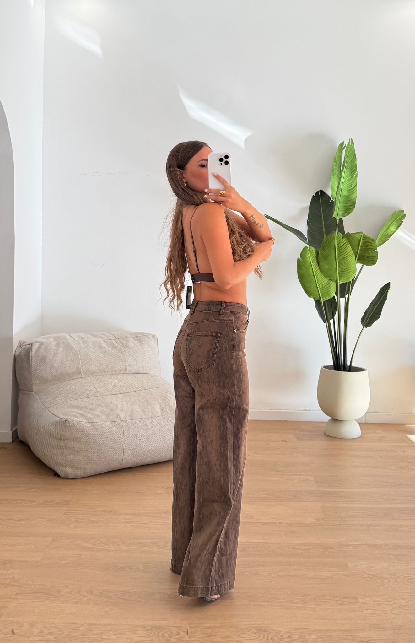 Jeans da donna semi elasticizzato fantasia pitonato ma veste regolarmente la propria taglia e la modella indossa taglia XS