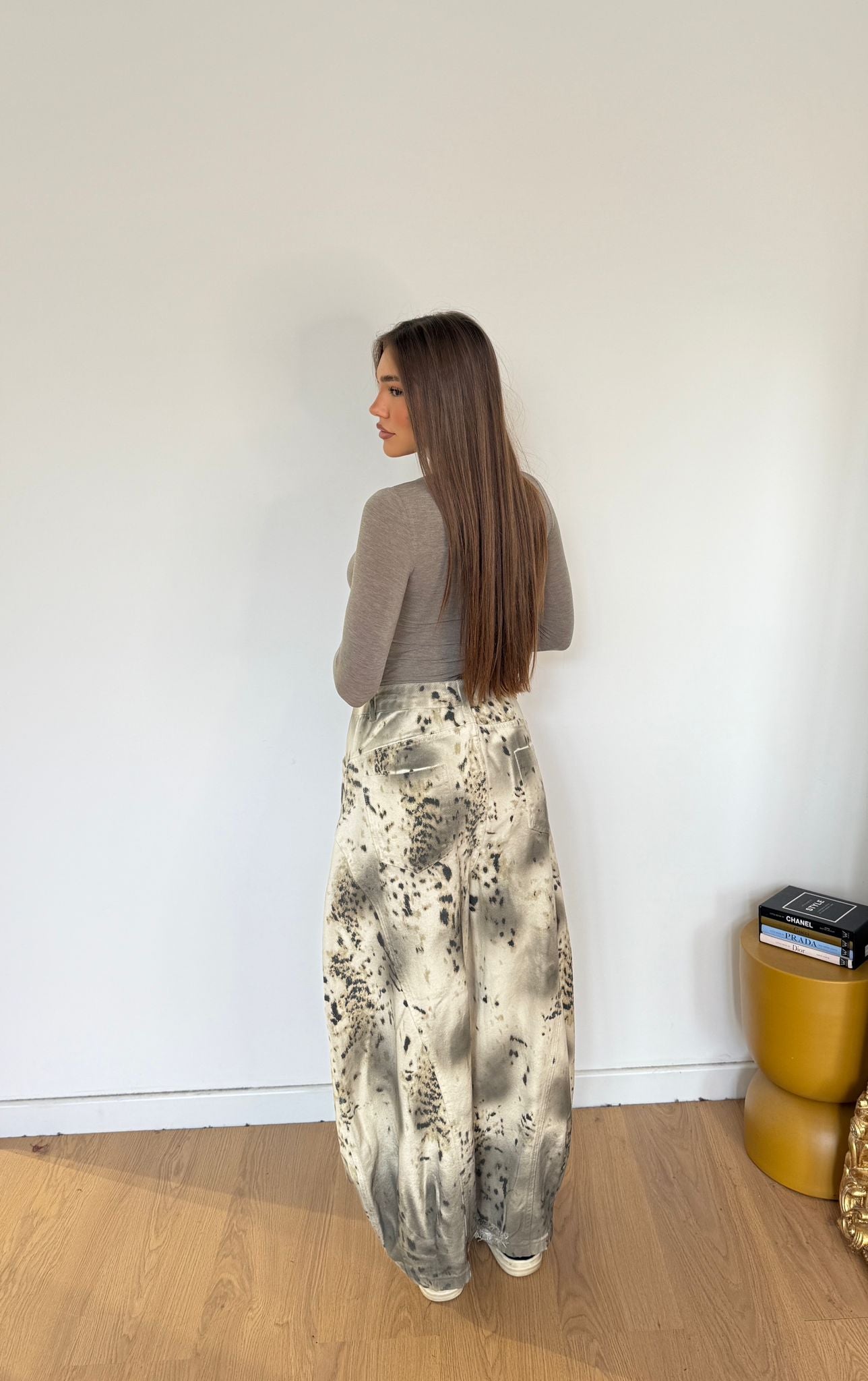 Jeans da donna fantasia COW in tela fissa, veste regolarmente la propria taglia, la modella indossa taglia S.
