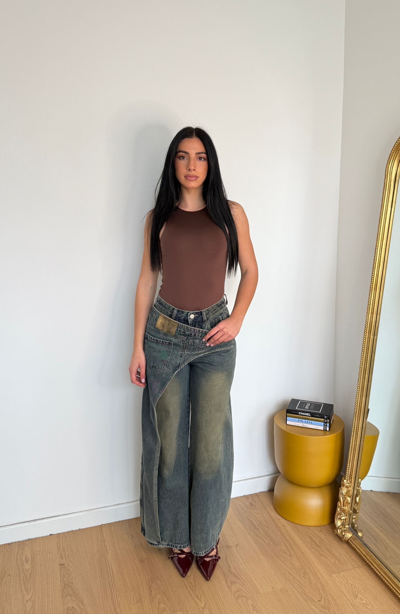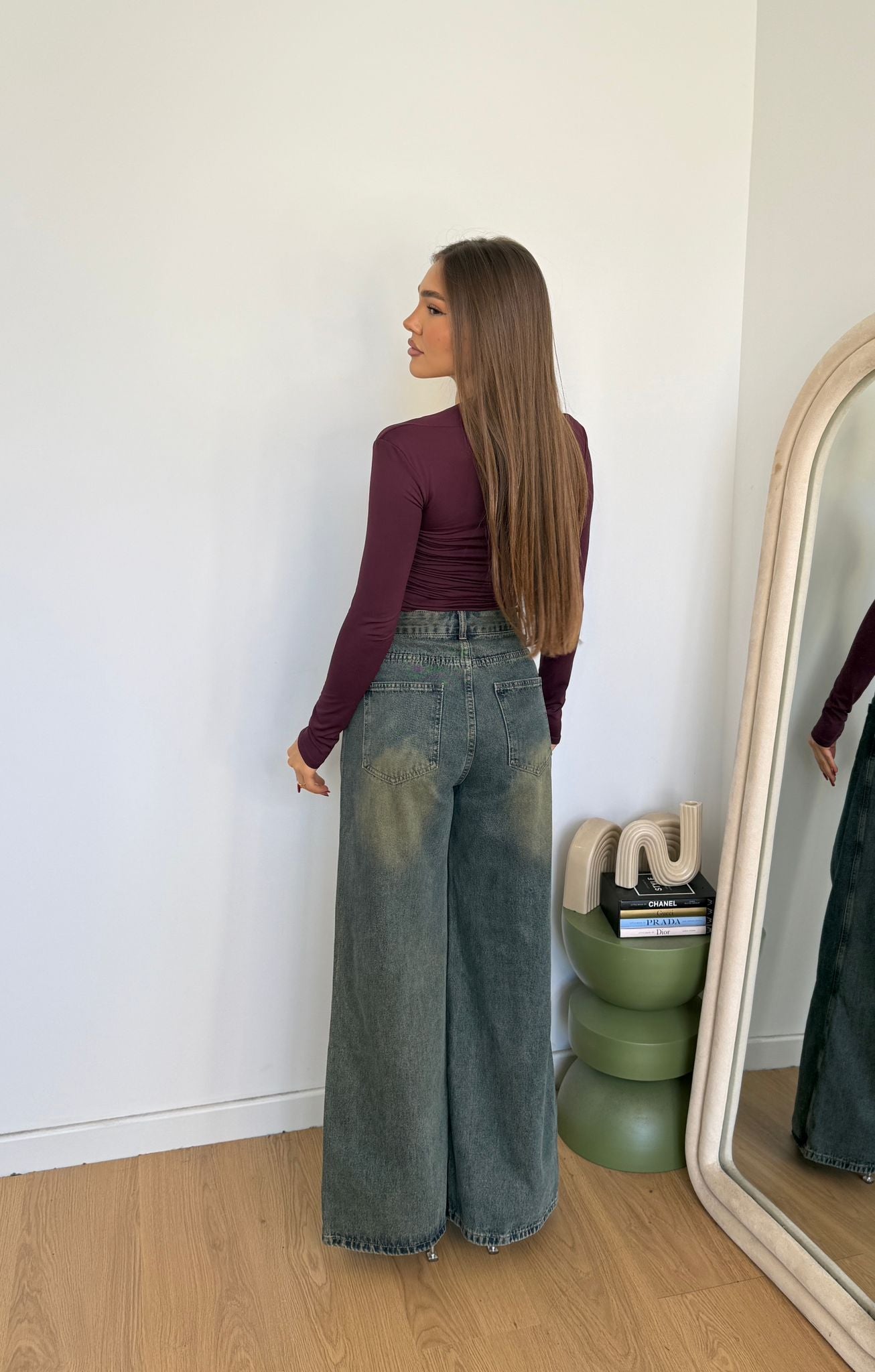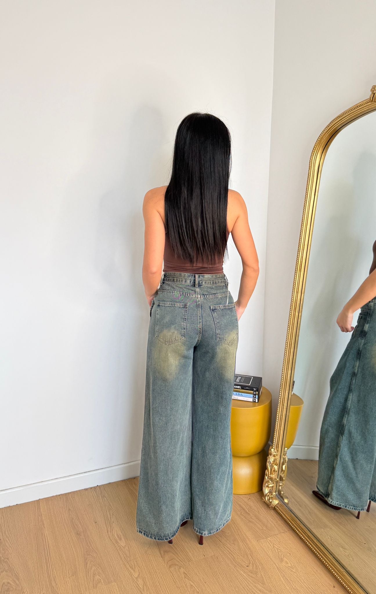 Jeans da donna in denim slavato in tela fissa non elasticizzato e veste la propria taglia, la modella indossa taglia S