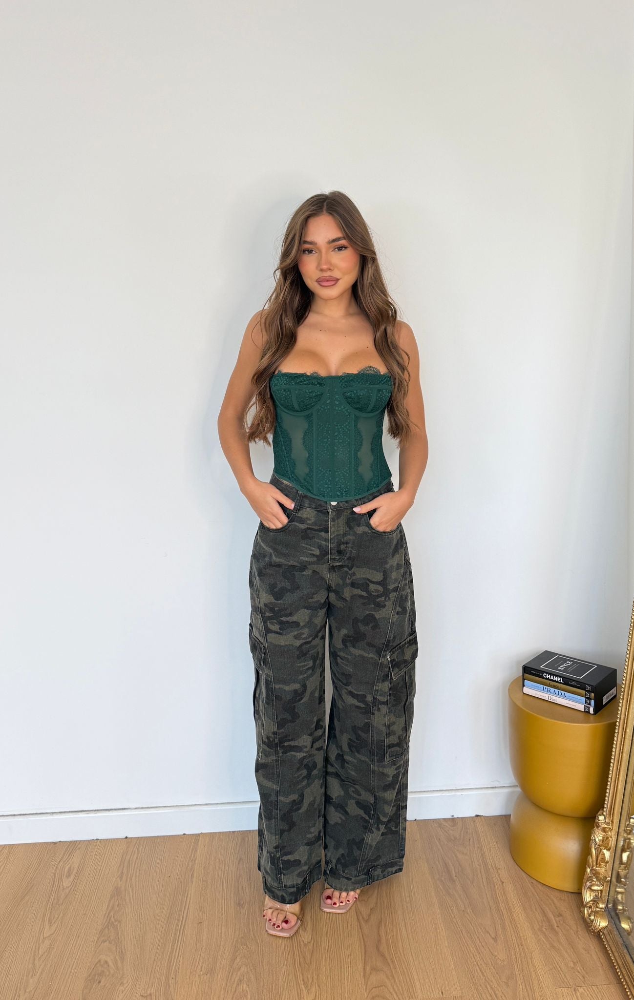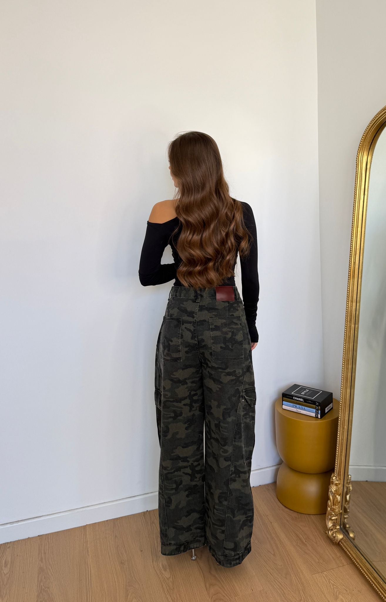 Jeans da donna fantasia militare, tessuto tela fissa non elasticizzato e veste regolarmente la propria taglia e la modella indossa taglia S