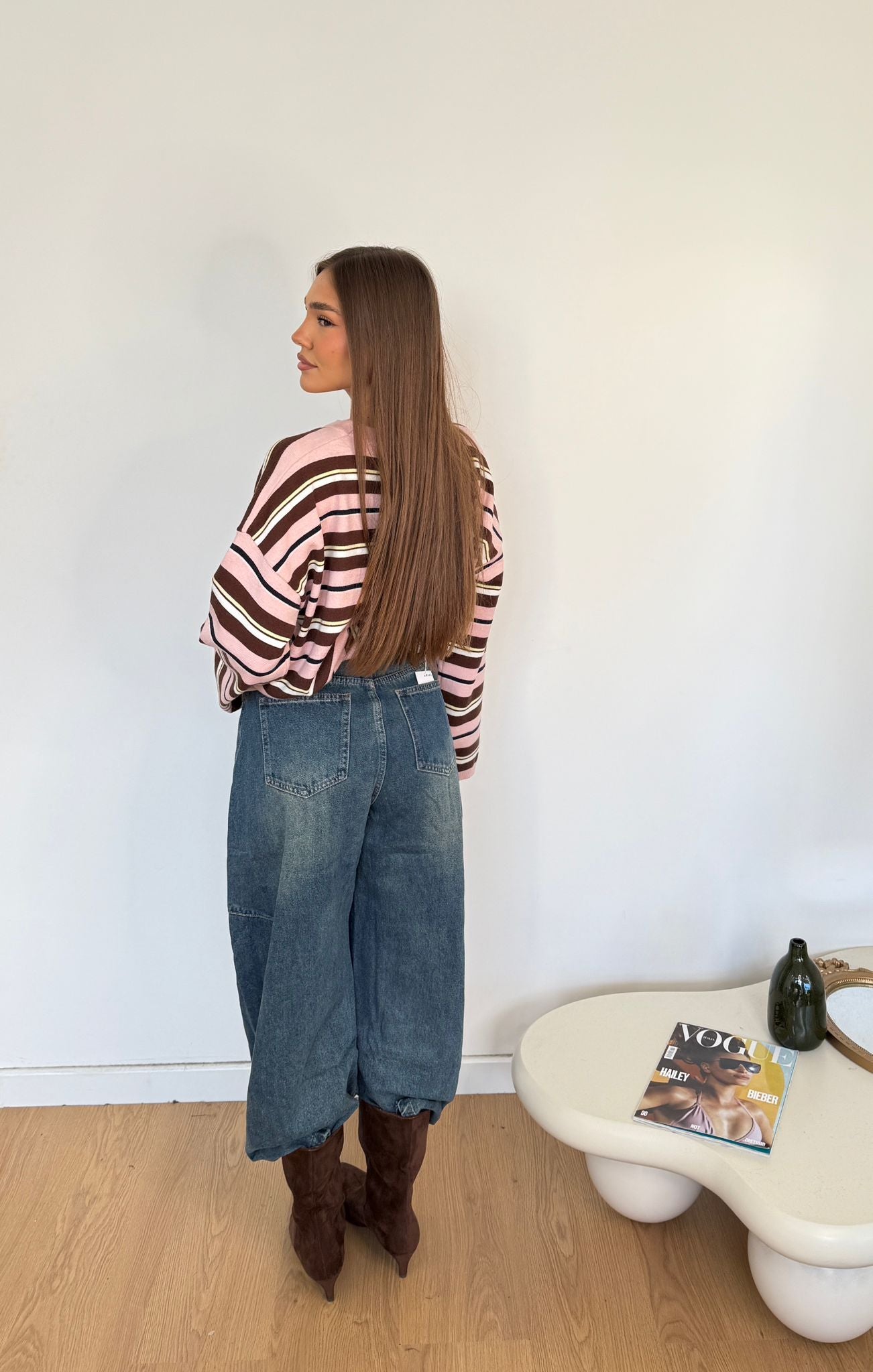 Jeans da donna in denim modello ballon, tessuto in tela fissa non elasticizzato e veste regolarmente la propria taglia e la modella indossa taglia XS