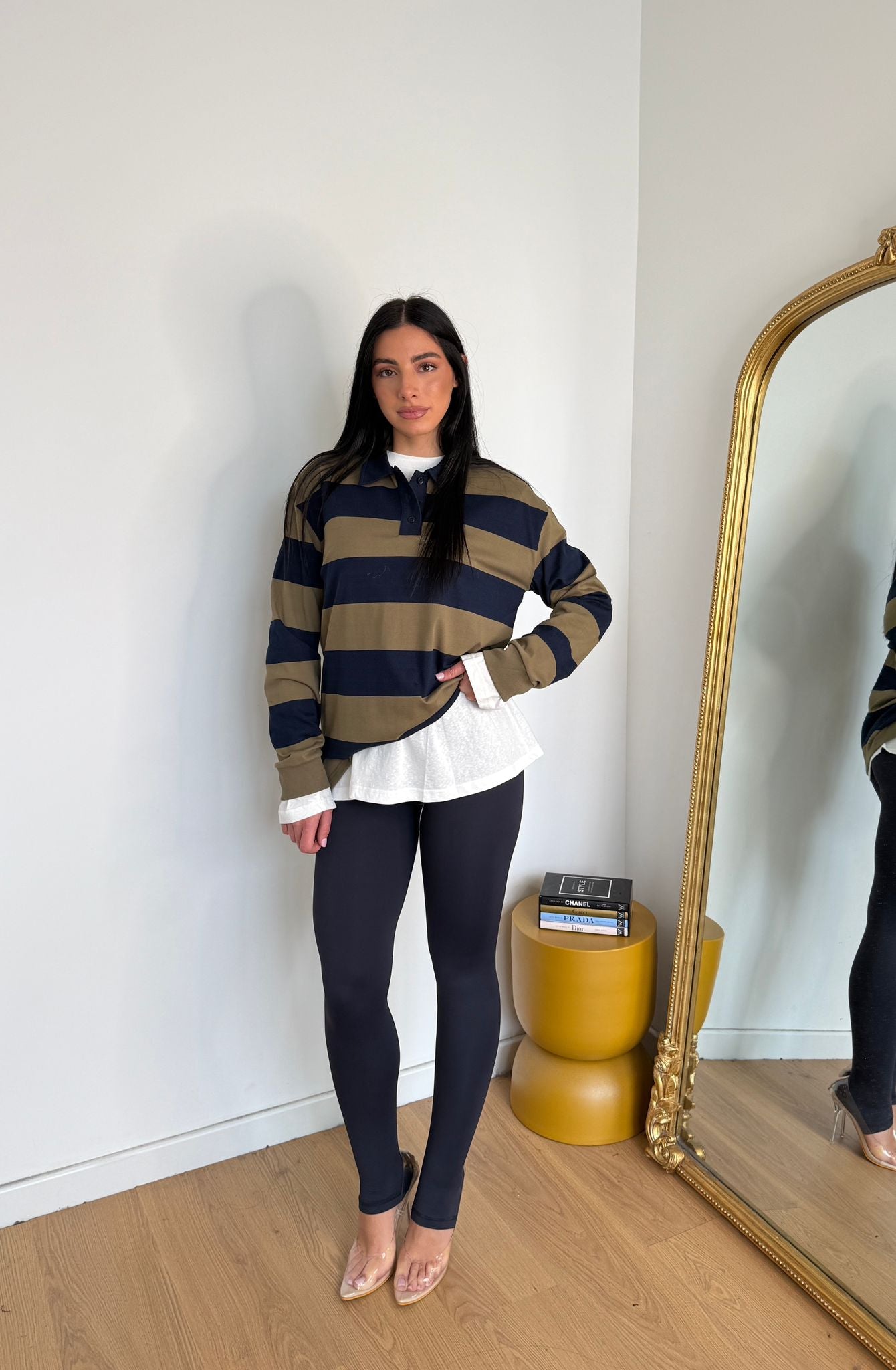 leggings da donna in lycra contenitivo, tessuti elasticizzato e veste regolarmente la propria taglia e la modella indossa taglia XS