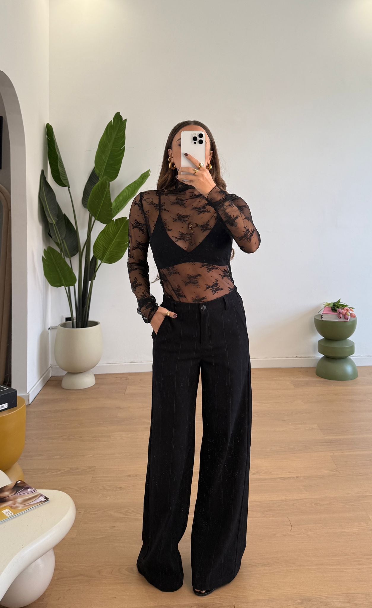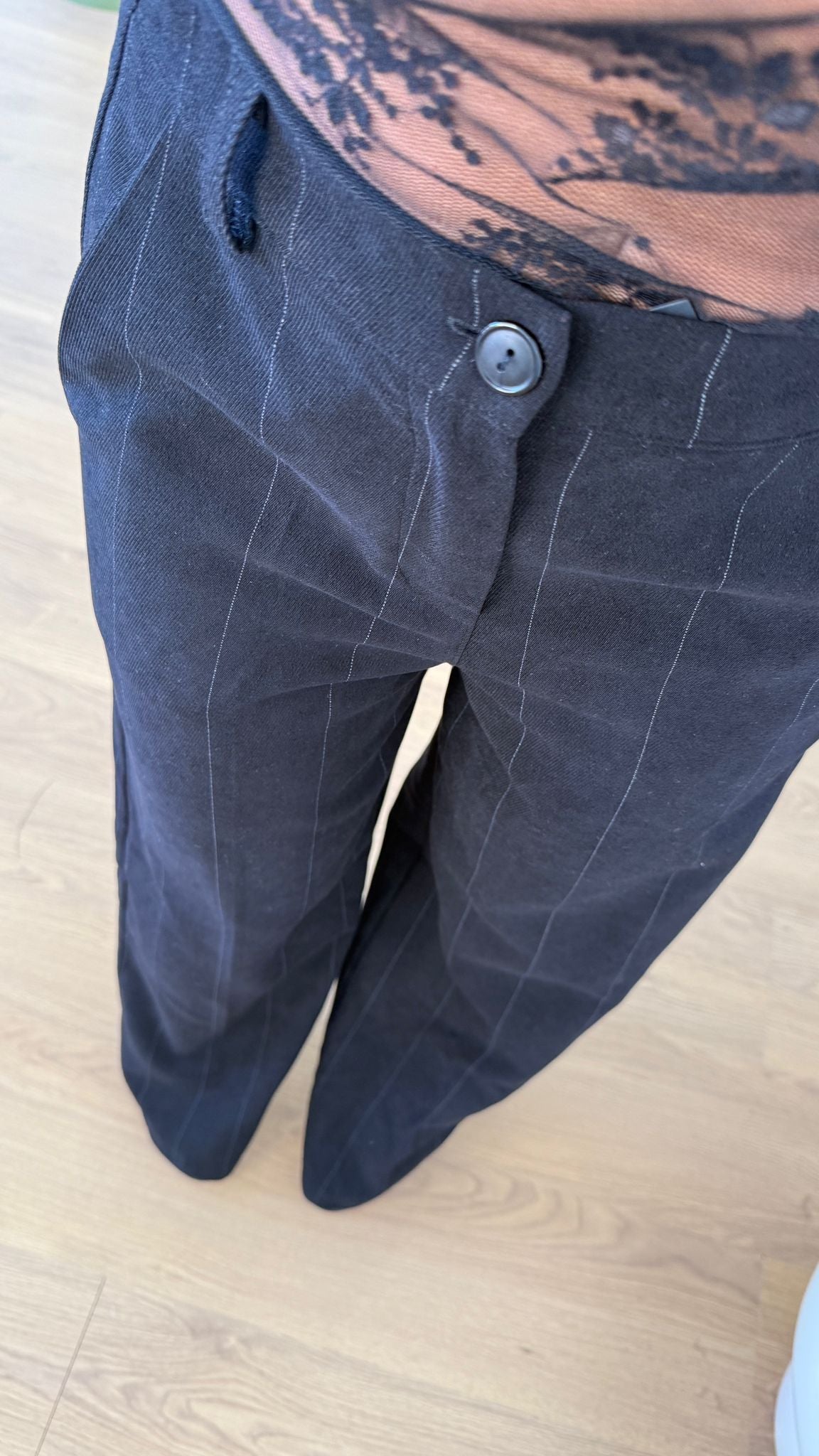 Pantalone da donna tessuto effetto camoscio,con elastico in vita sul retro e bottoncino sul davanti, semi elasticizzato, top quality. La modella indossa taglia S.