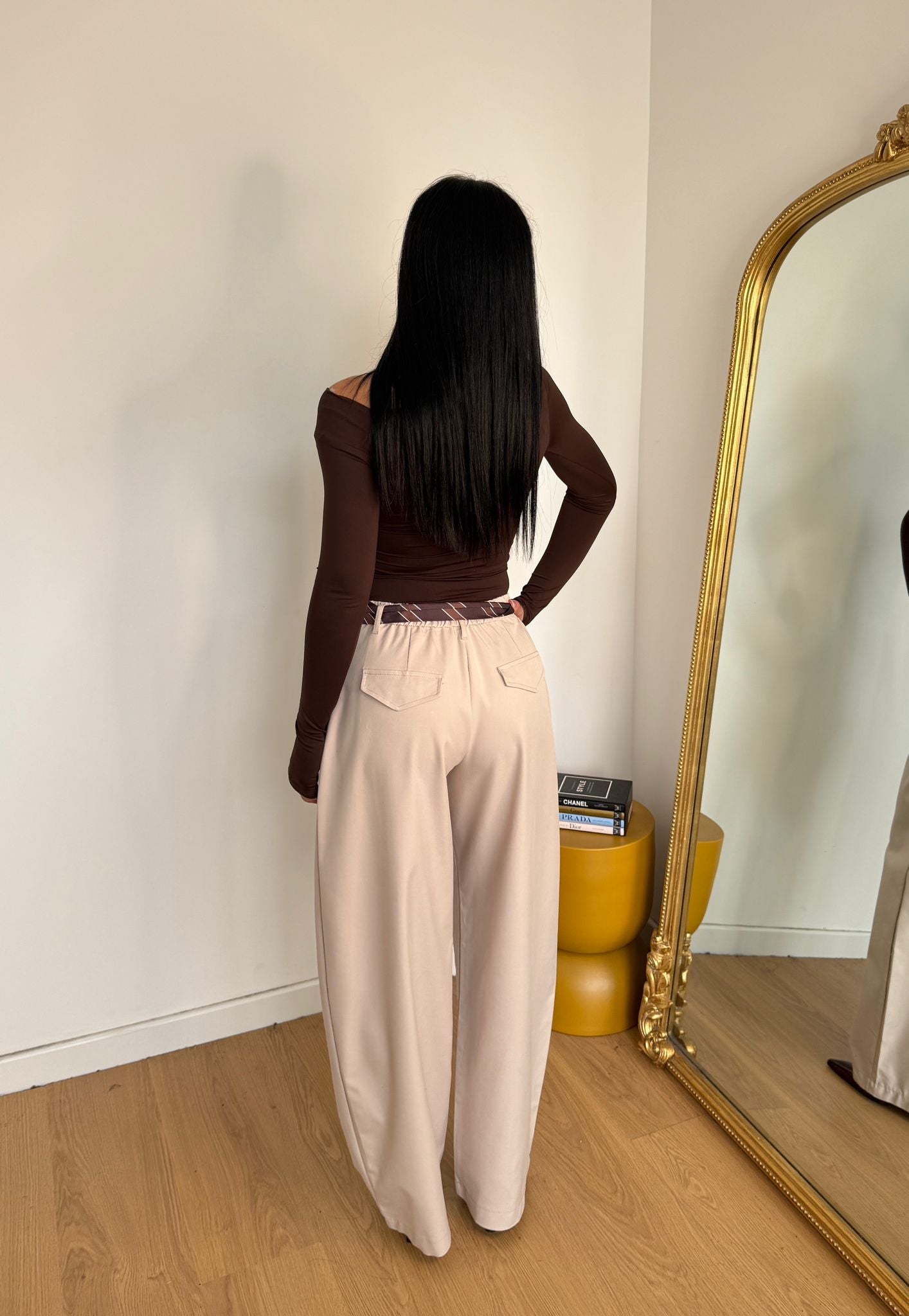 Pantalone da donna in cotone elastica sul retro in vita  con cintura e vestirà bene fino a d una M/L