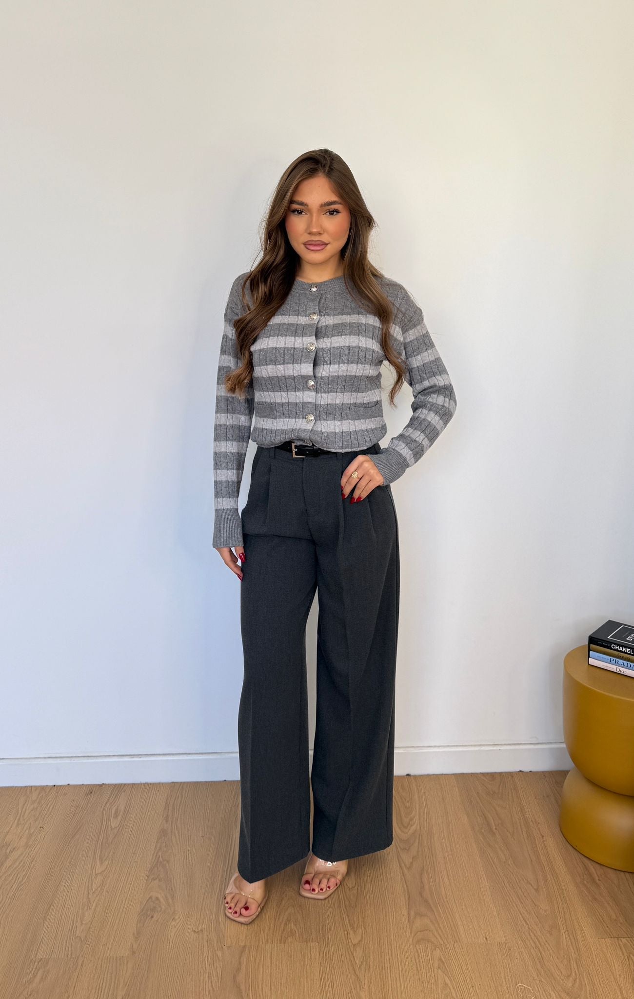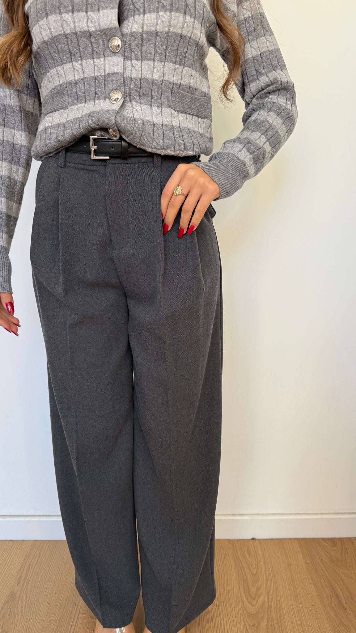 Pantalone da donna taglio classico con cintura compresa, gamba larga e veste regolarmente la propria taglia e la modella indossa taglia XS