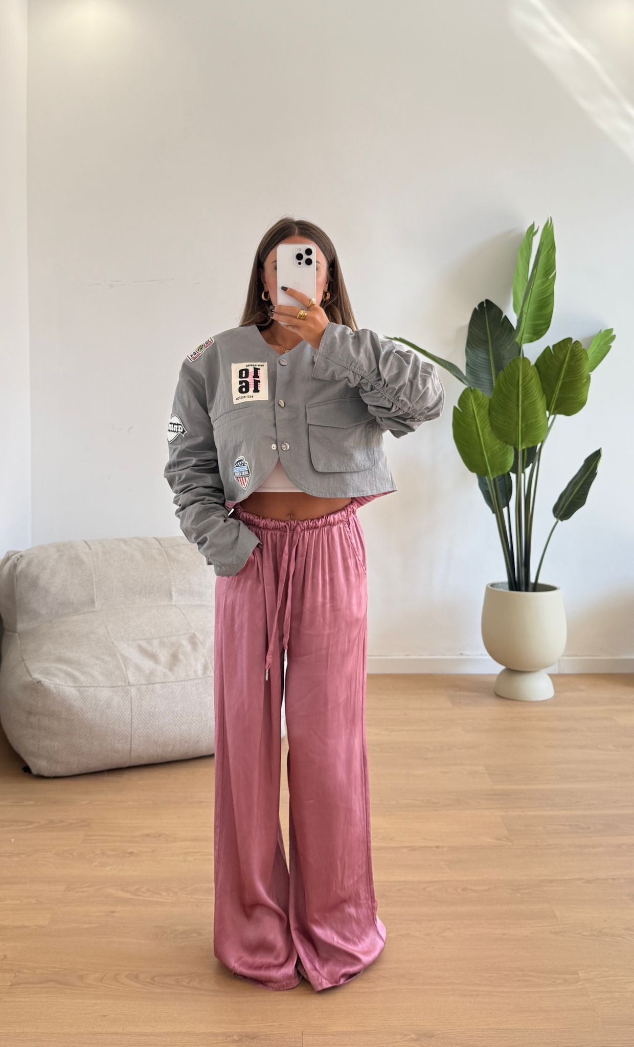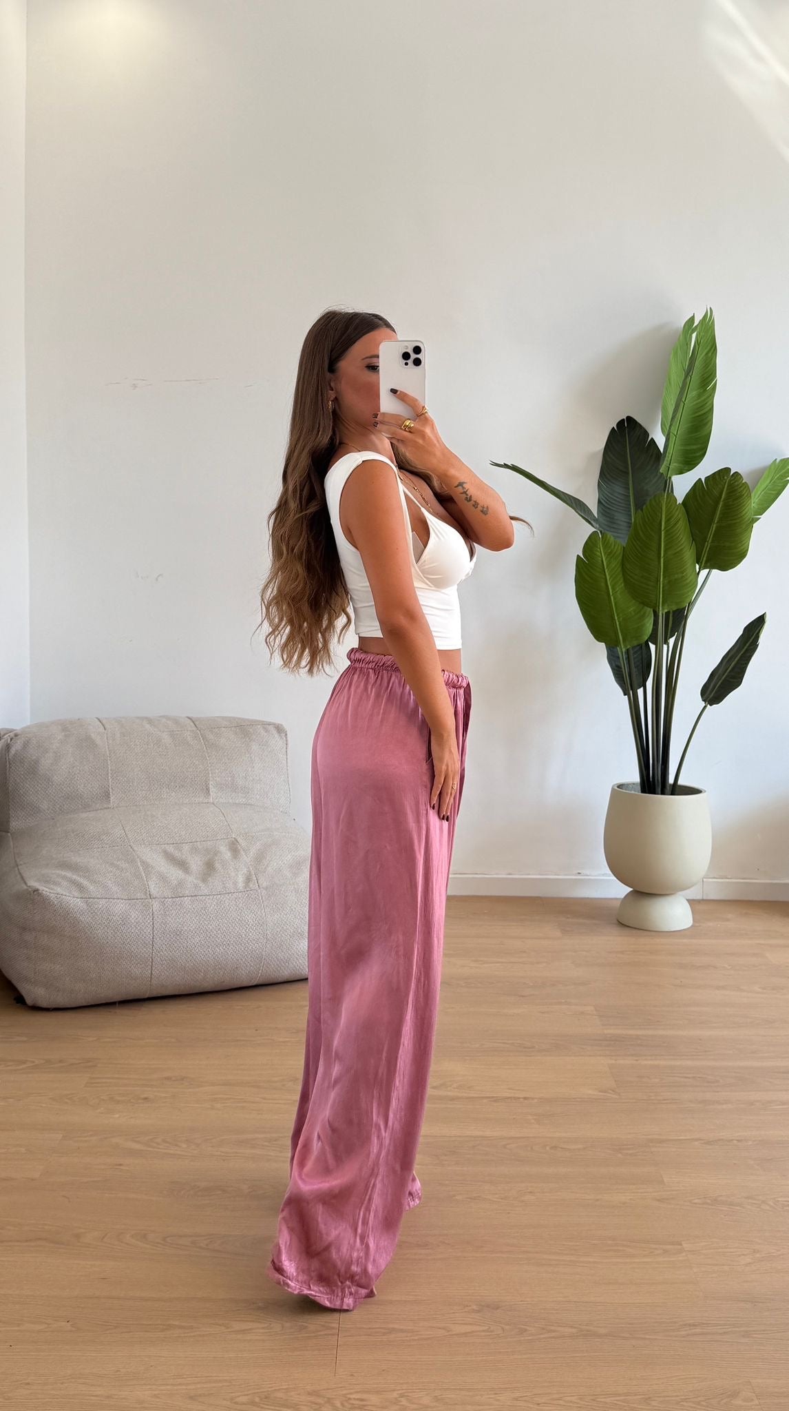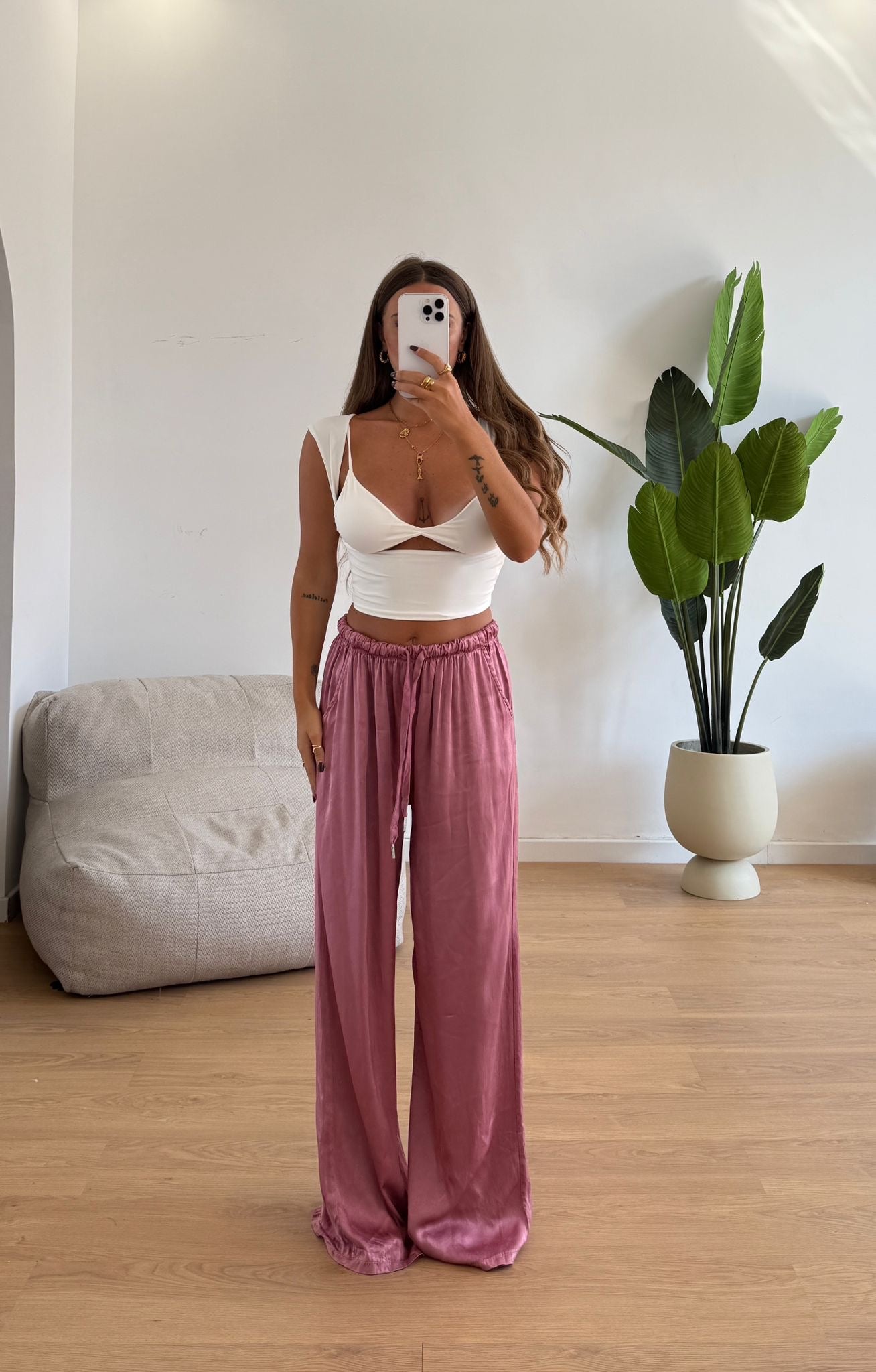 Pantalone da donna tessuto morbido con elastico in vita e laccio regolabile, effetto satin e vestirà bene fino ad una M/L