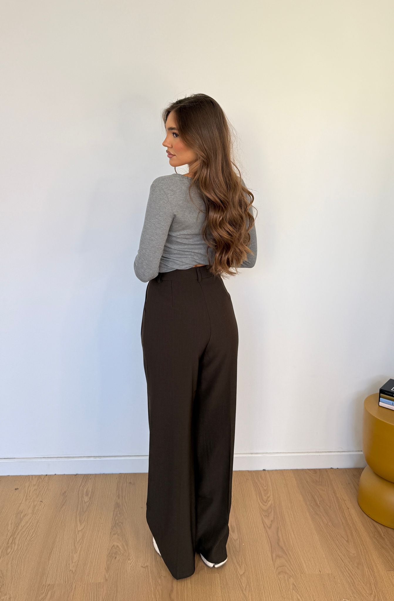 Pantalone da donna taglio classico, vita alta e veste regolarmente la propria taglia e la modella indossa taglia XS