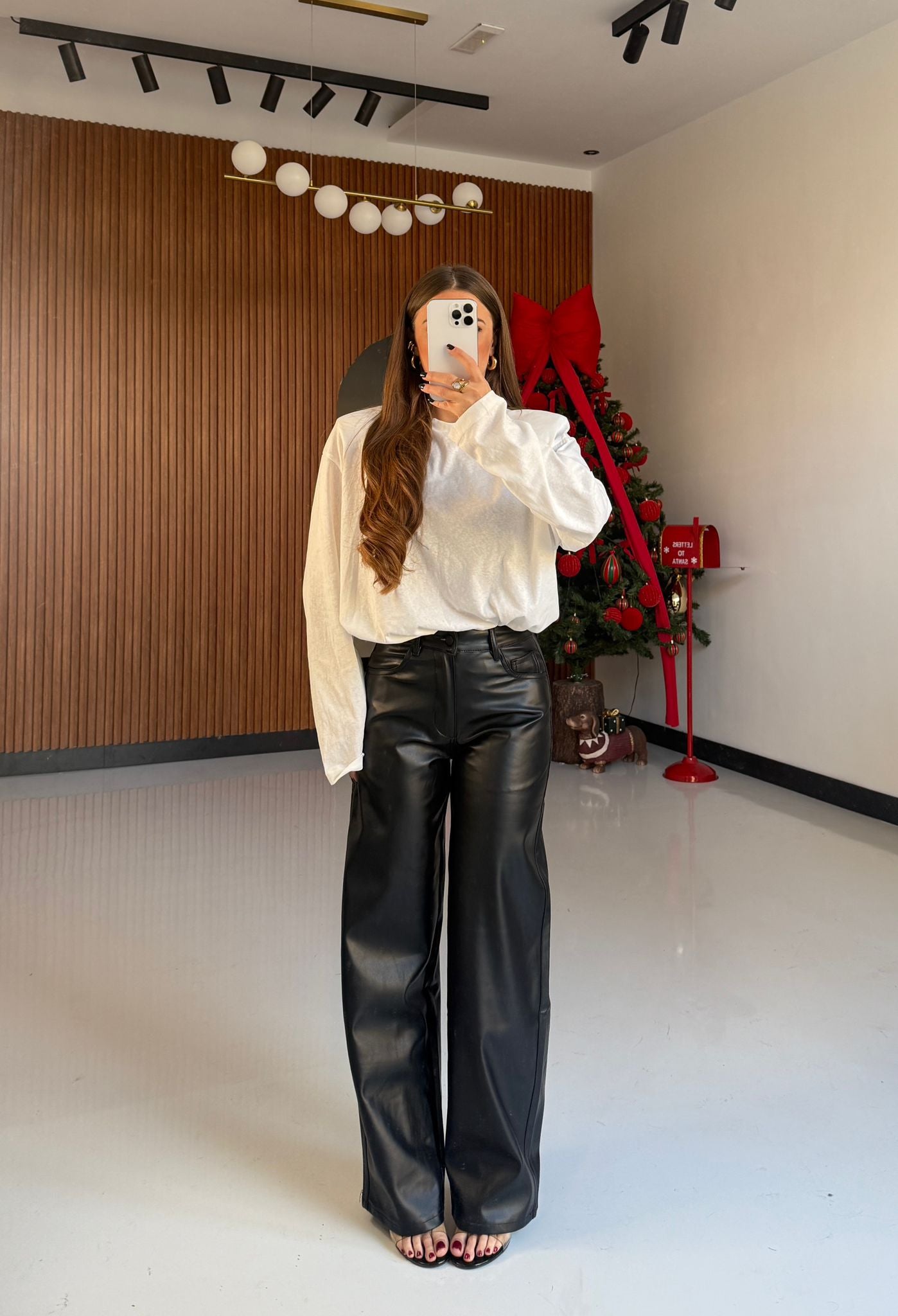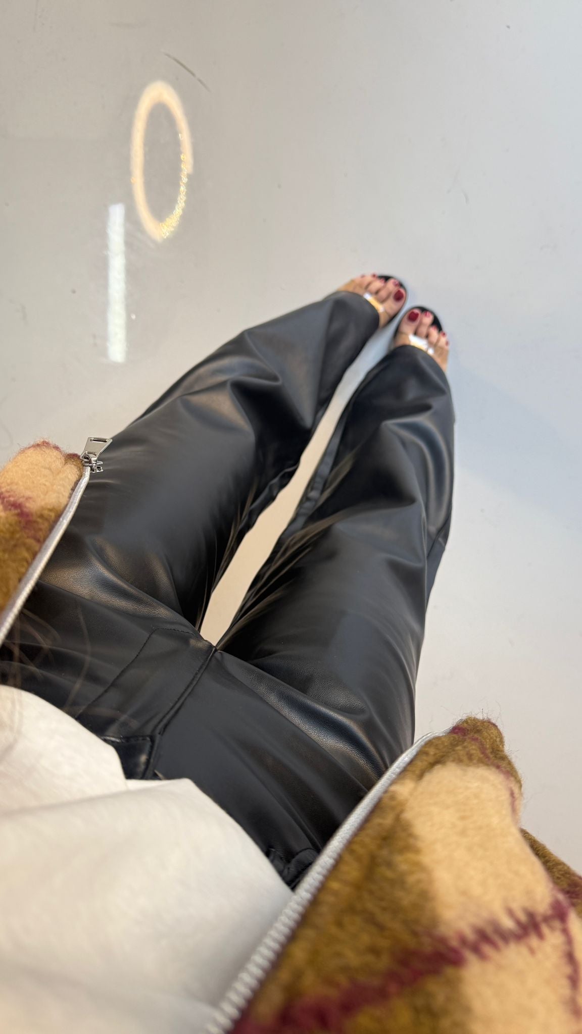 Pantalone in ecopelle Leandra T6057-1-NERO