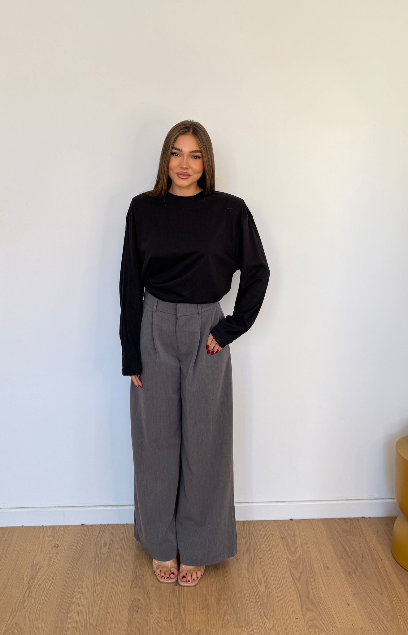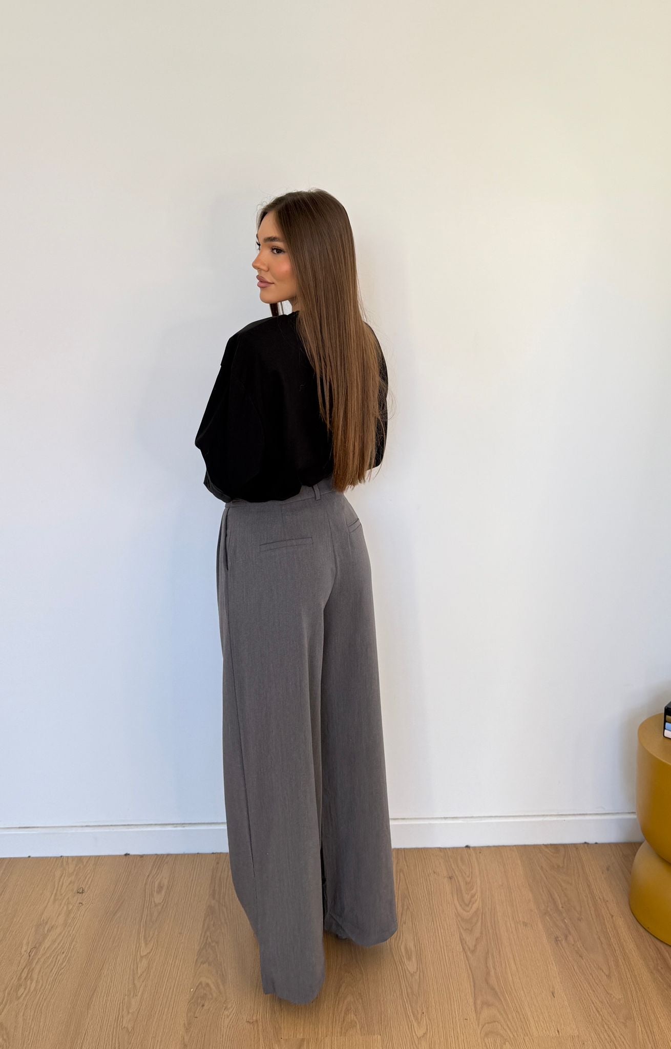 Pantalone da donna gamba larga in cotone e veste regolarmente la propria taglia e la modella indossa taglia S