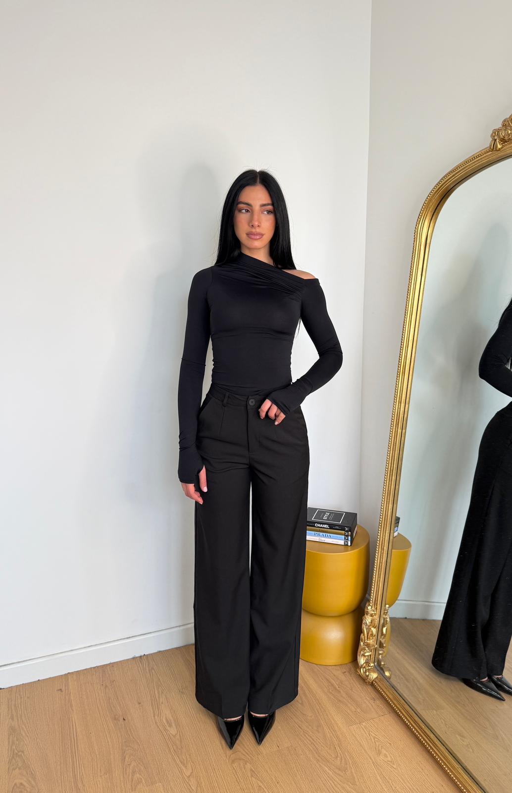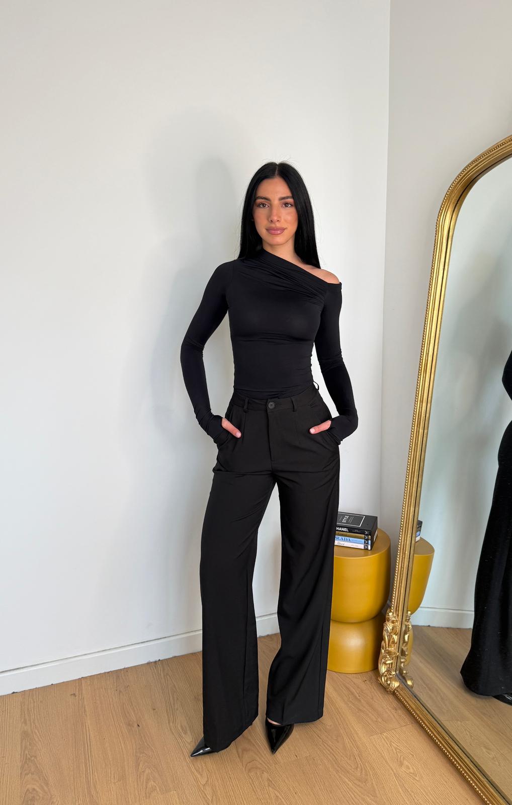 Pantalone da donna vita alta e veste regolarmente la propria taglia e la modella indossa taglia S